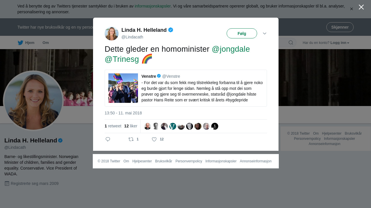 “- For det var du som fekk meg tilstrekkeleg forbanna til å gjere noko eg burde gjort for lenge sidan. Nemleg å stå opp mot dei som prøver og gjere seg til overmenneske, statsråd @jongdale hilste pastor Hans Reite som er svært kritisk til årets #bygdepride”
