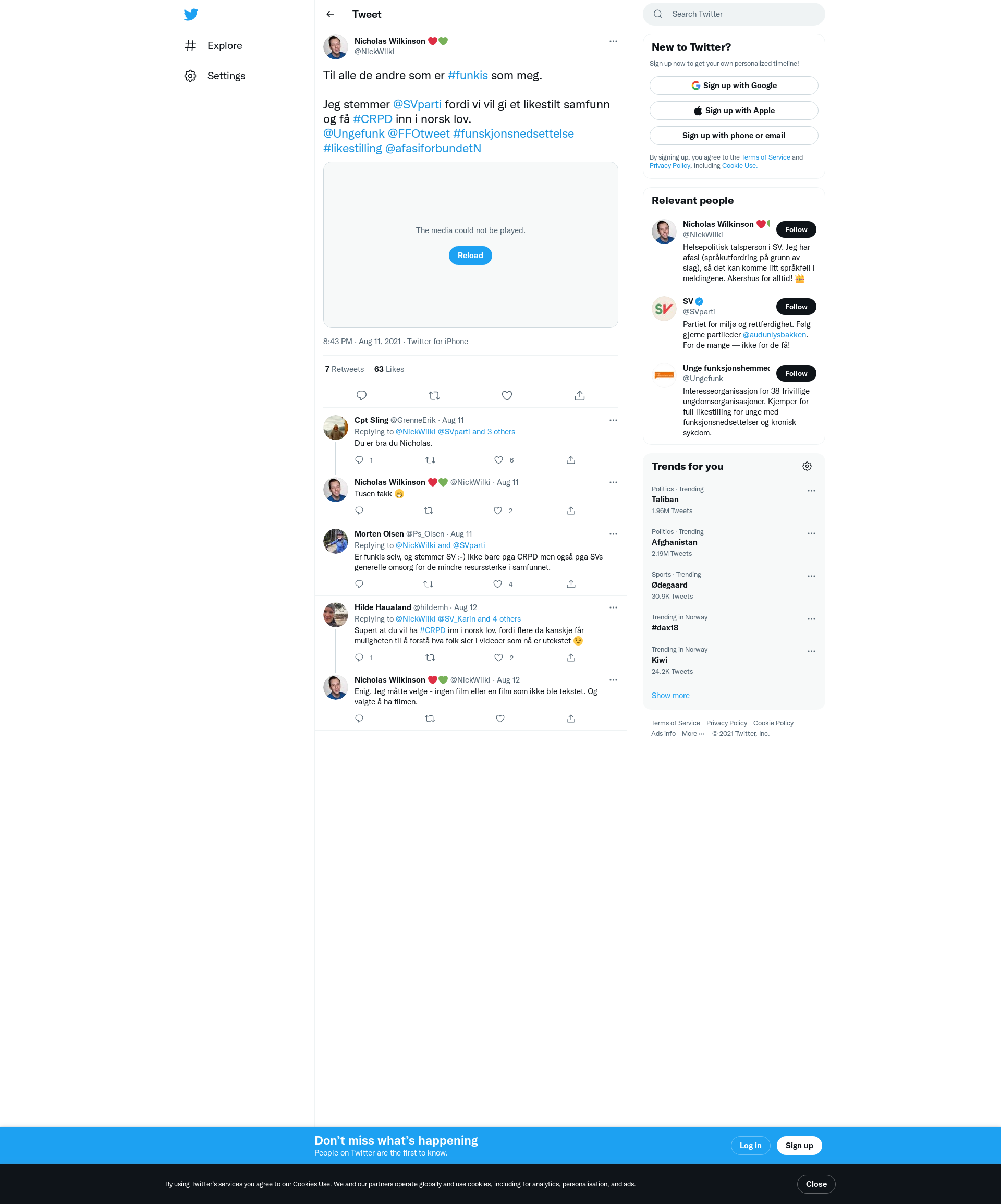 Jeg stemmer @SVparti fordi vi vil gi et likestilt samfunn og få #CRPD inn i norsk lov.
