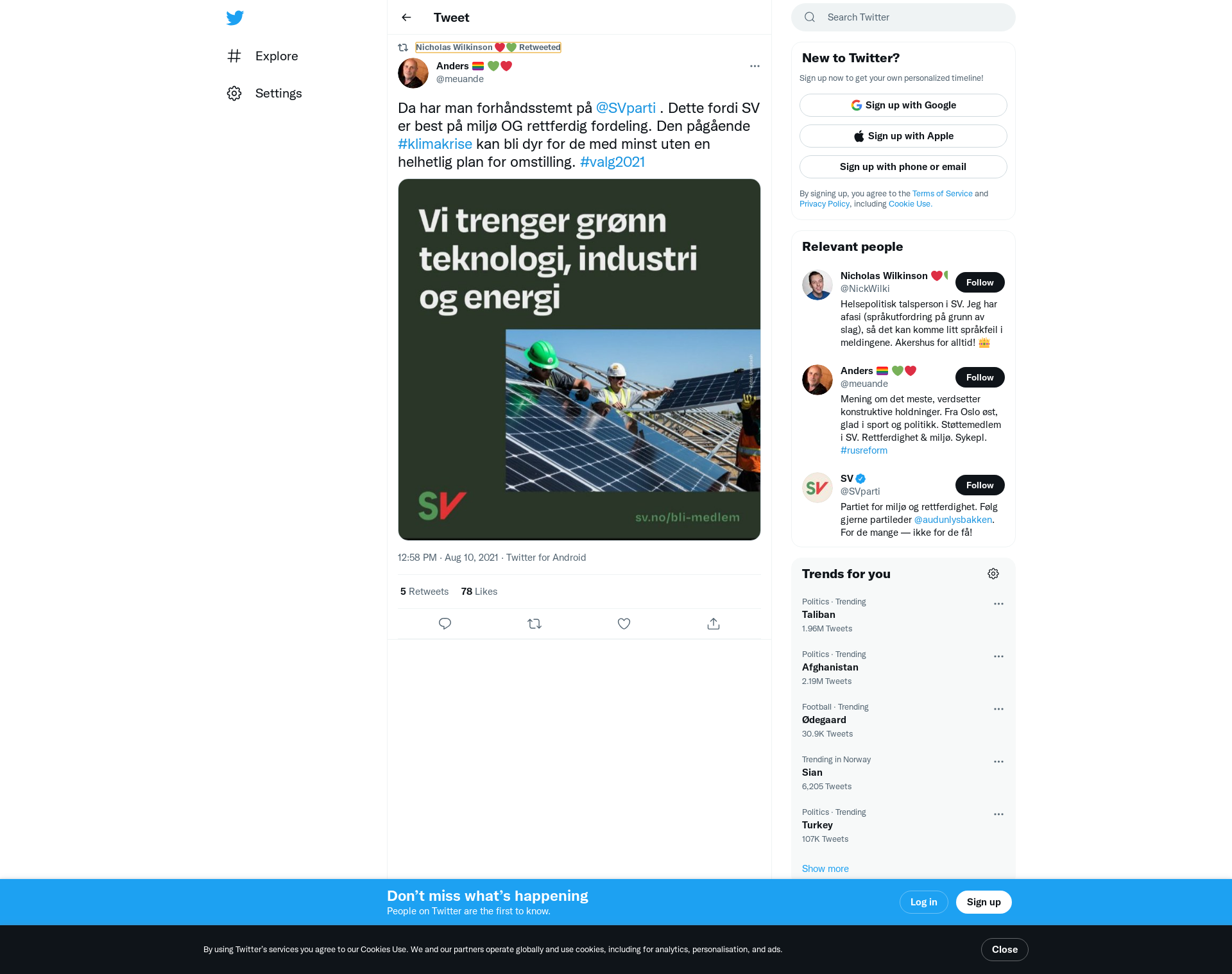 RT @meuande: Da har man forhåndsstemt på @SVparti . Dette fordi SV er best på miljø OG rettferdig fordeling. Den pågående #klimakrise kan bli dyr for de med minst uten en helhetlig plan for omstilling. #valg2021 https://t.co/Uoz3Yfq2Ct