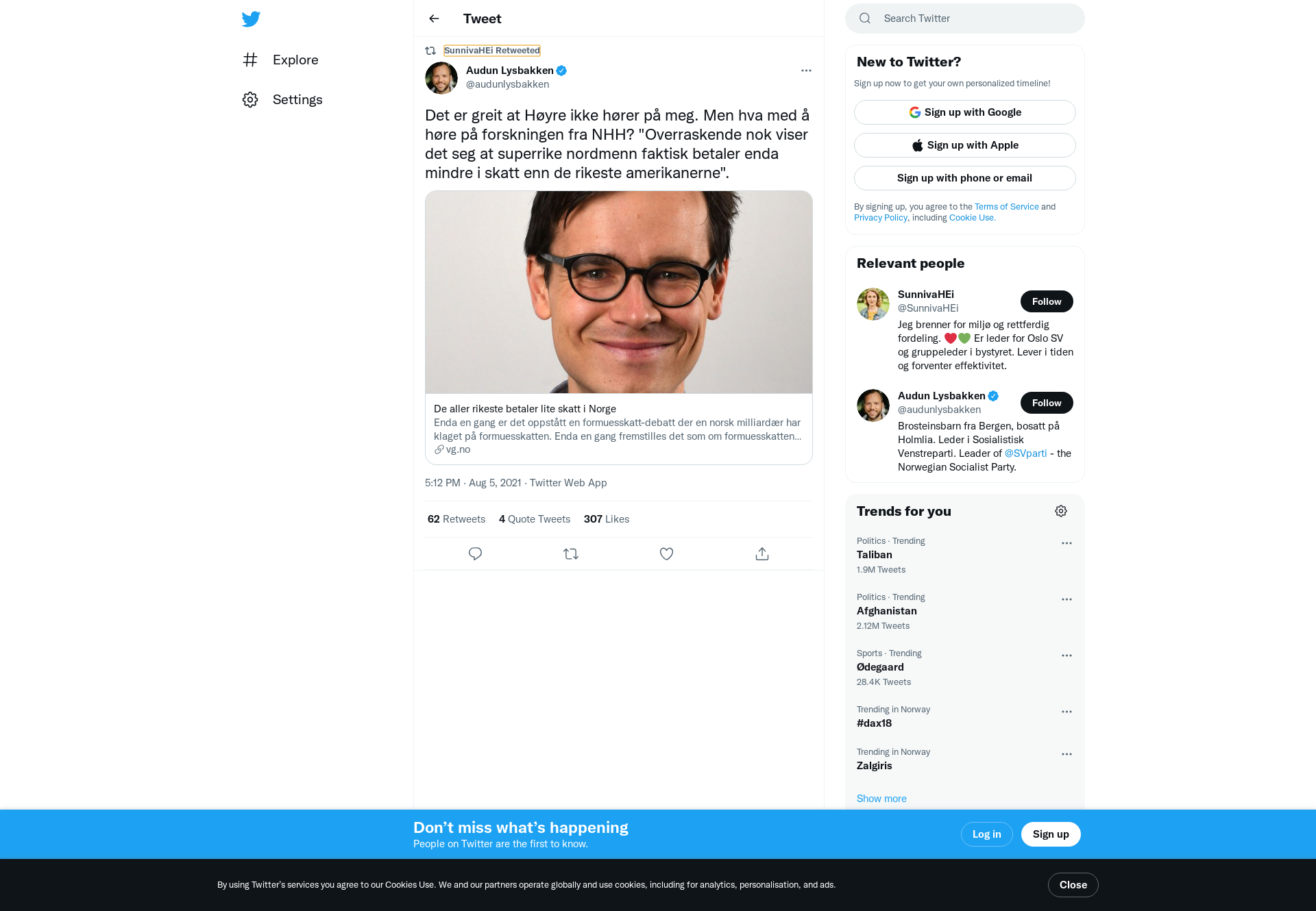 RT @audunlysbakken: Det er greit at Høyre ikke hører på meg. Men hva med å høre på forskningen fra NHH? "Overraskende nok viser det seg at superrike nordmenn faktisk betaler enda mindre i skatt enn de rikeste amerikanerne". https://t.co/cgwh2lYasA