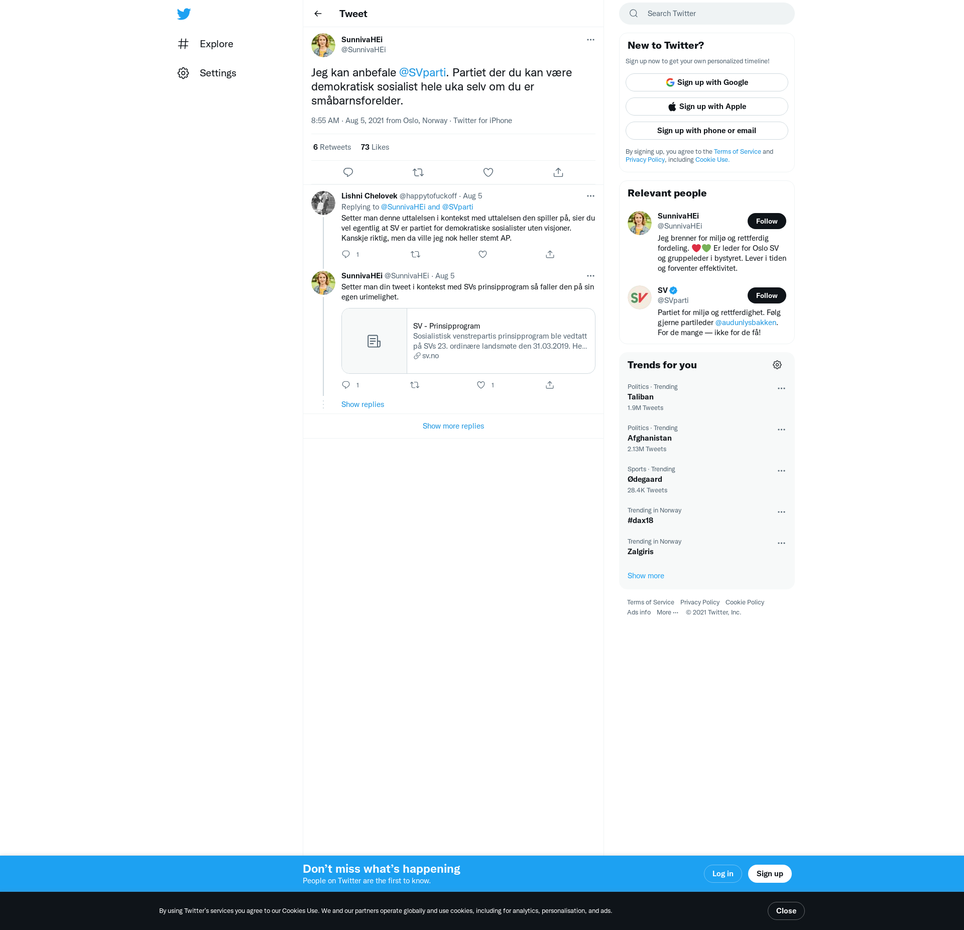 Jeg kan anbefale @SVparti. Partiet der du kan være demokratisk sosialist hele uka selv om du er småbarnsforelder.