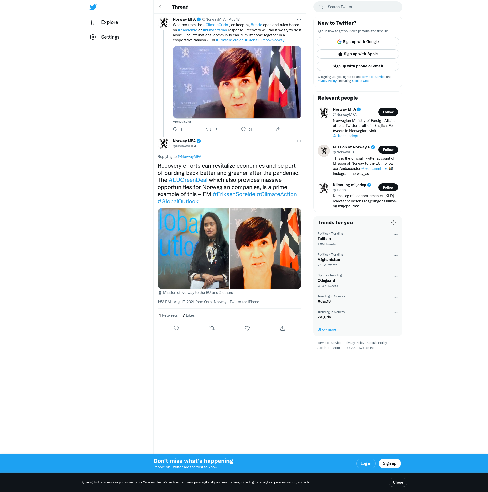Recovery efforts can revitalize economies and be part of building back better and greener after the pandemic. The #EUGreenDeal which also provides massive opportunities for Norwegian companies, is a prime example of this – FM #EriksenSoreide #ClimateAction #GlobalOutlook https://t.co/dbJ0854JQm