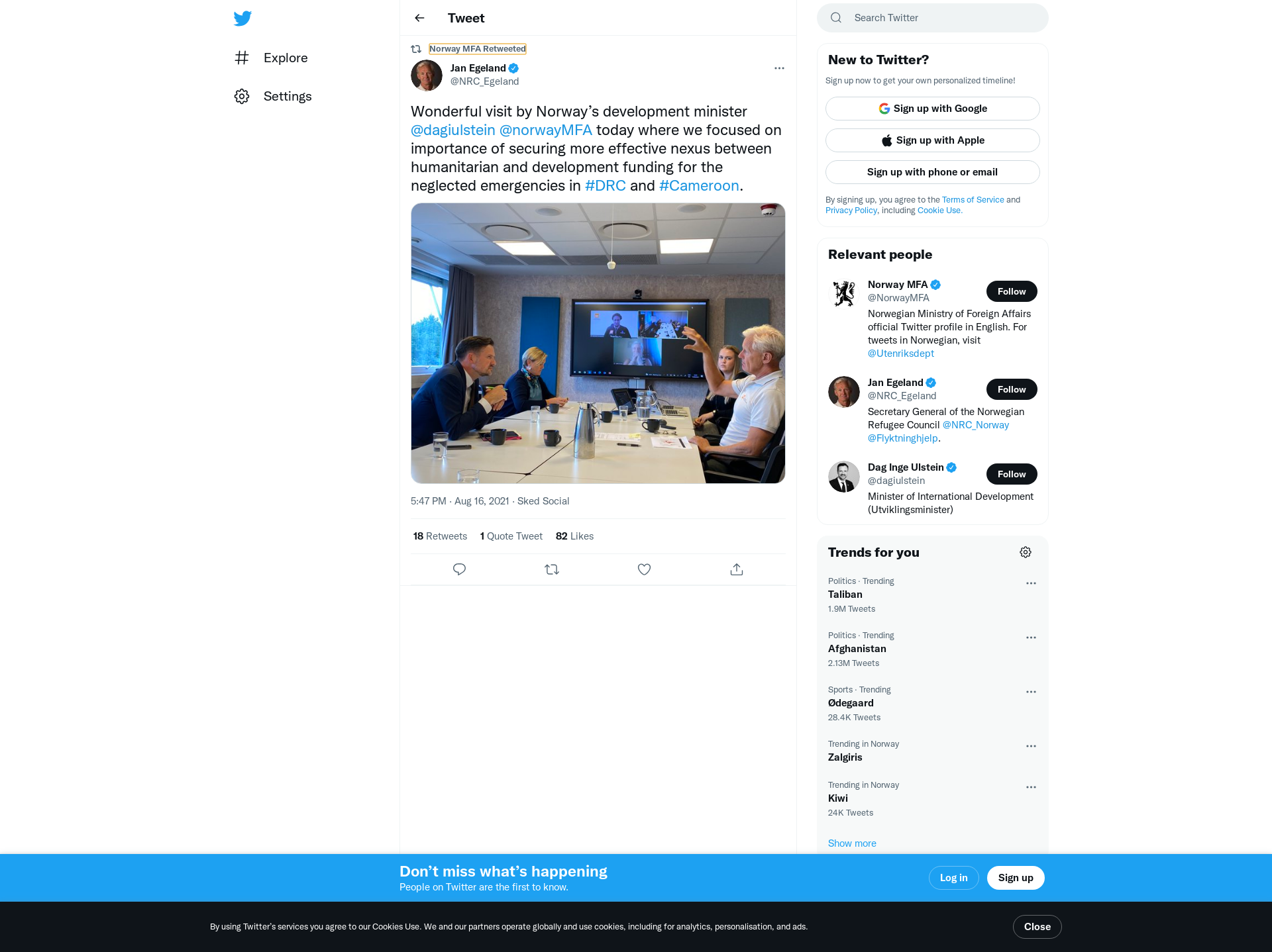 RT @NRC_Egeland: Wonderful visit by Norway’s development minister @dagiulstein @norwayMFA today where we focused on importance of securing more effective nexus between humanitarian and development funding for the neglected emergencies in #DRC and #Cameroon. https://t.co/Ey1rCypdFf