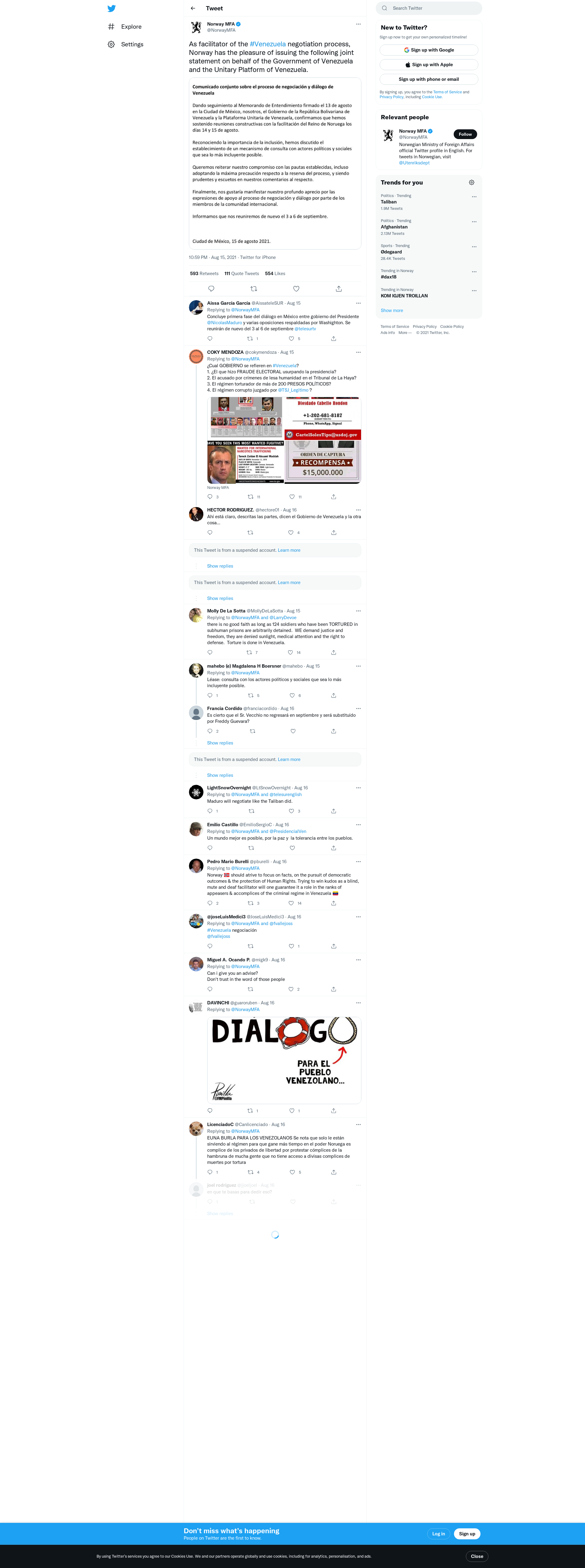 As facilitator of the #Venezuela negotiation process, Norway has the pleasure of issuing the following joint statement on behalf of the Government of Venezuela and the Unitary Platform of Venezuela. https://t.co/wkdd369uSN