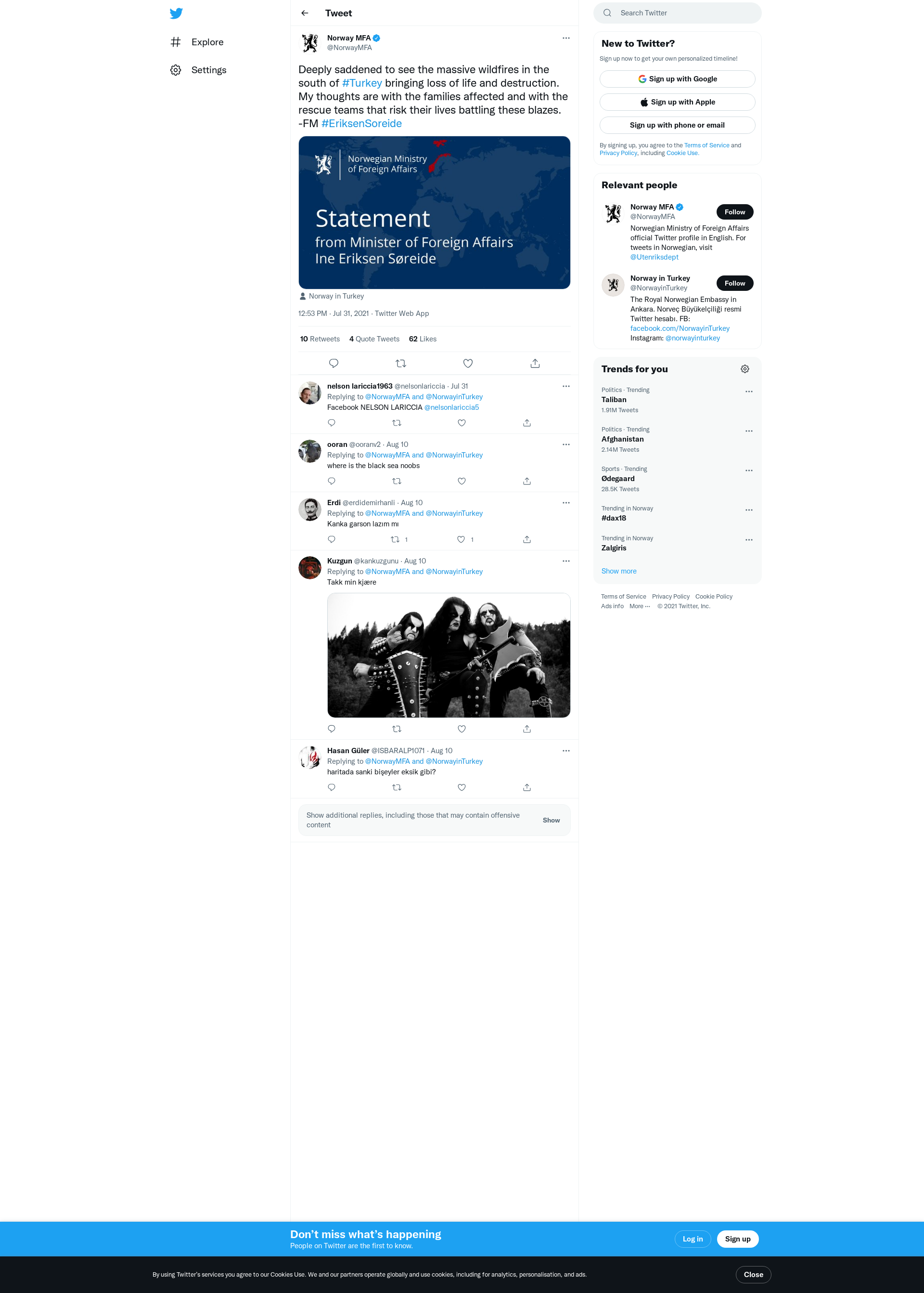 Deeply saddened to see the massive wildfires in the south of #Turkey bringing loss of life and destruction. My thoughts are with the families affected and with the rescue teams that risk their lives battling these blazes.