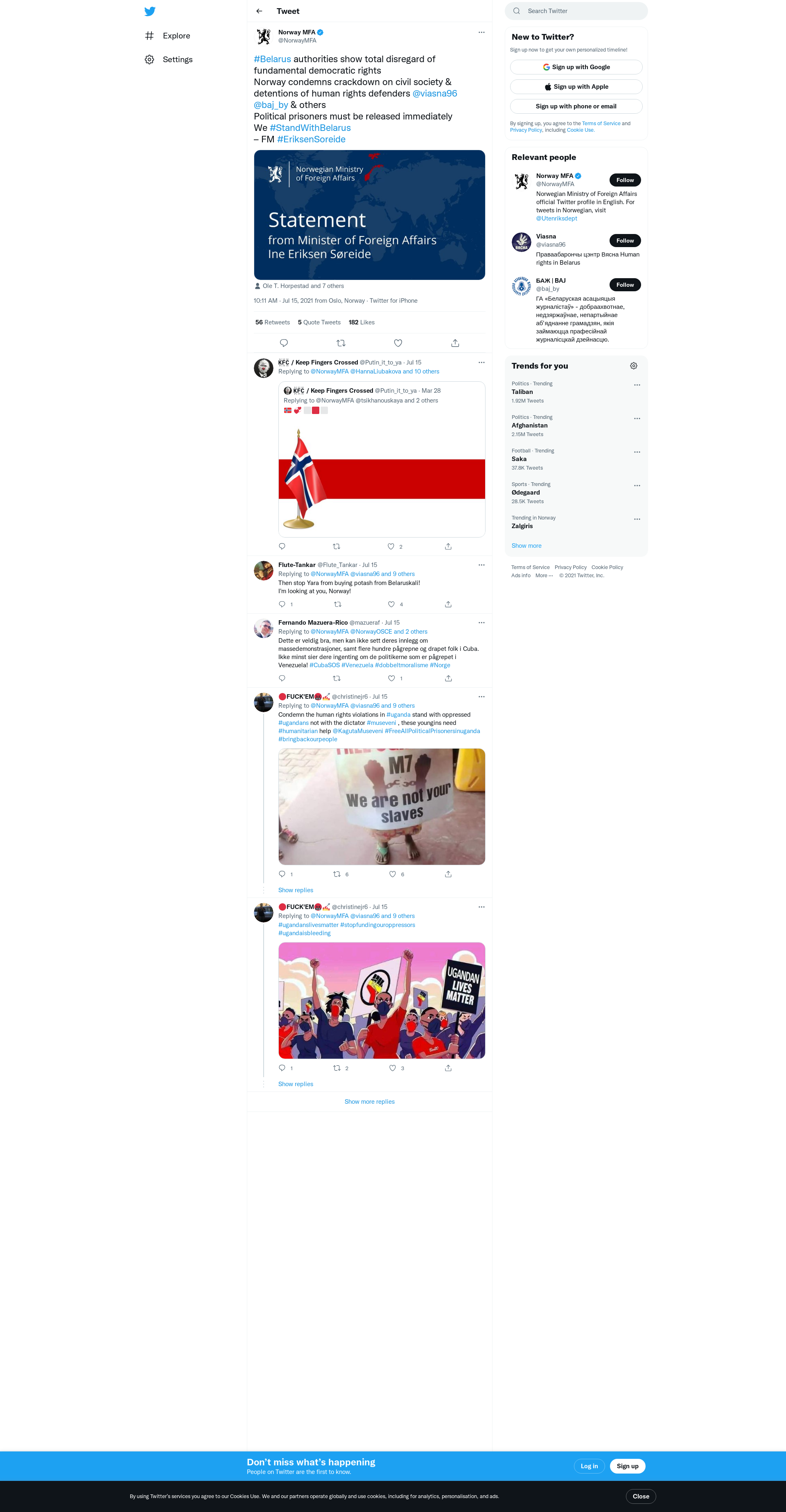 Norway condemns crackdown on civil society & detentions of human rights defenders @viasna96 @baj_by & others