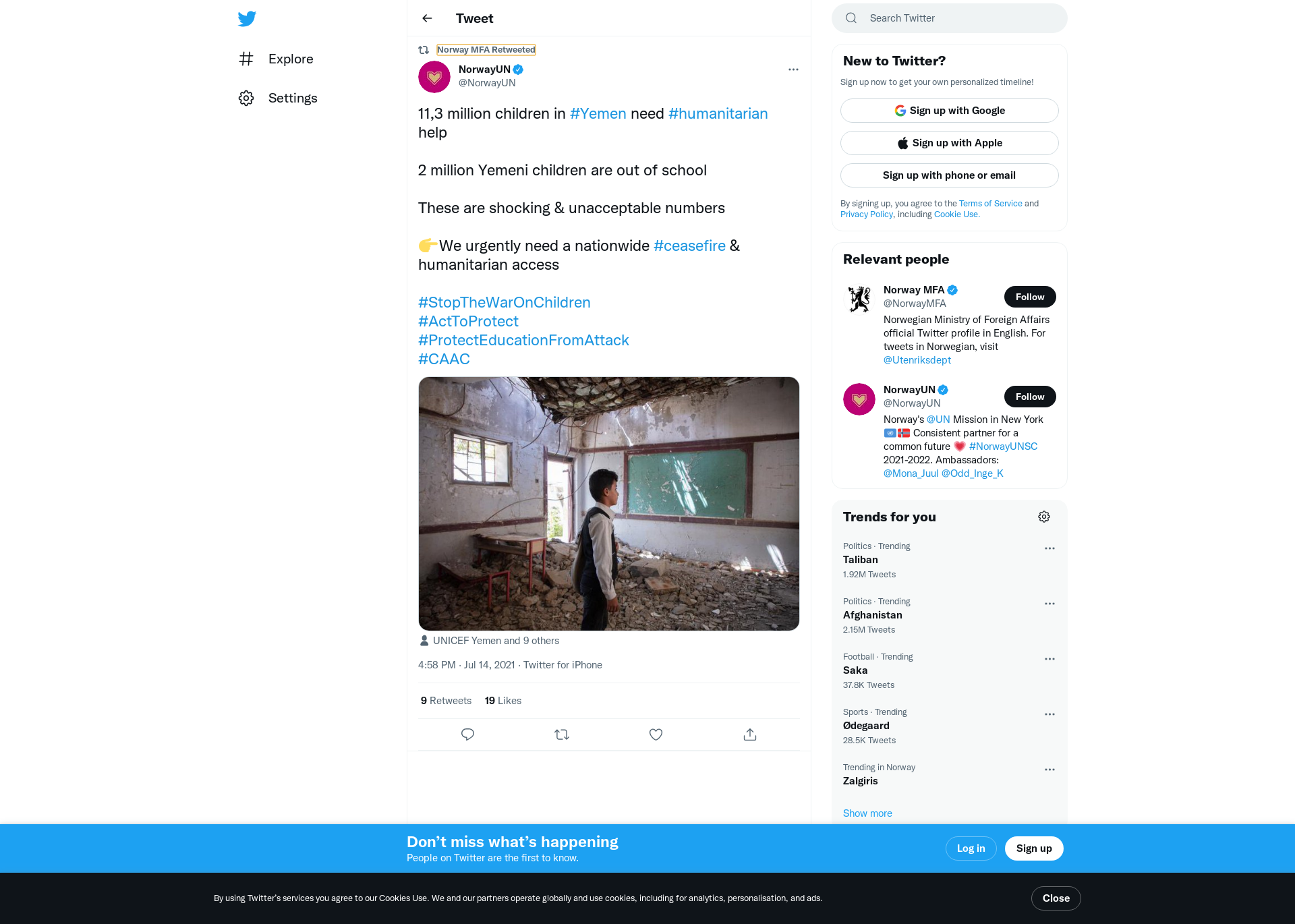 RT @NorwayUN: 11,3 million children in #Yemen need #humanitarian help 2 million Yemeni children are out of school These are shocking & un…