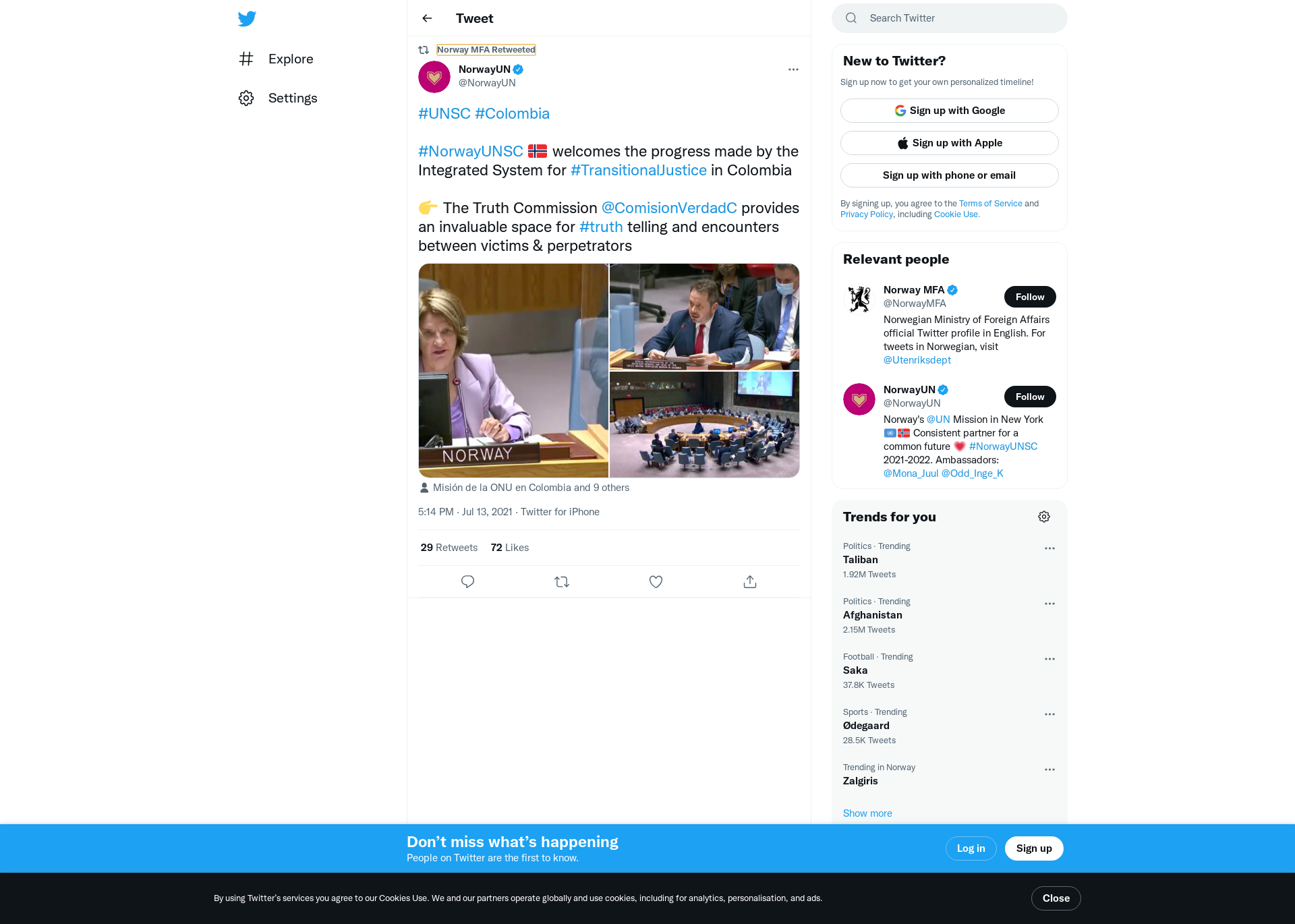 RT @NorwayUN: #UNSC #Colombia #NorwayUNSC 🇳🇴 welcomes the progress made by the Integrated System for #TransitionalJustice in Colombia 👉 T…