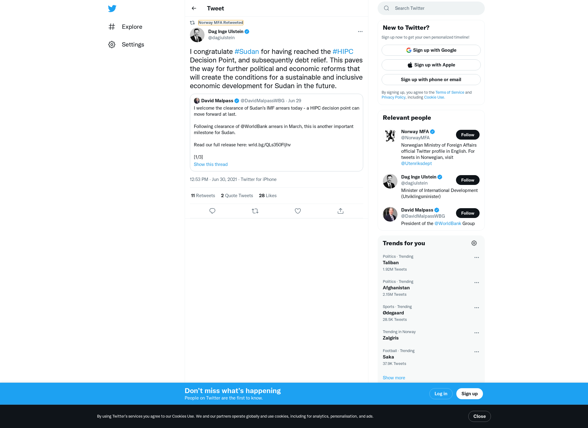 RT @dagiulstein: I congratulate #Sudan for having reached the #HIPC Decision Point, and subsequently debt relief. This paves the way for further political and economic reforms that will create the conditions for a sustainable and inclusive economic development for Sudan in the future.