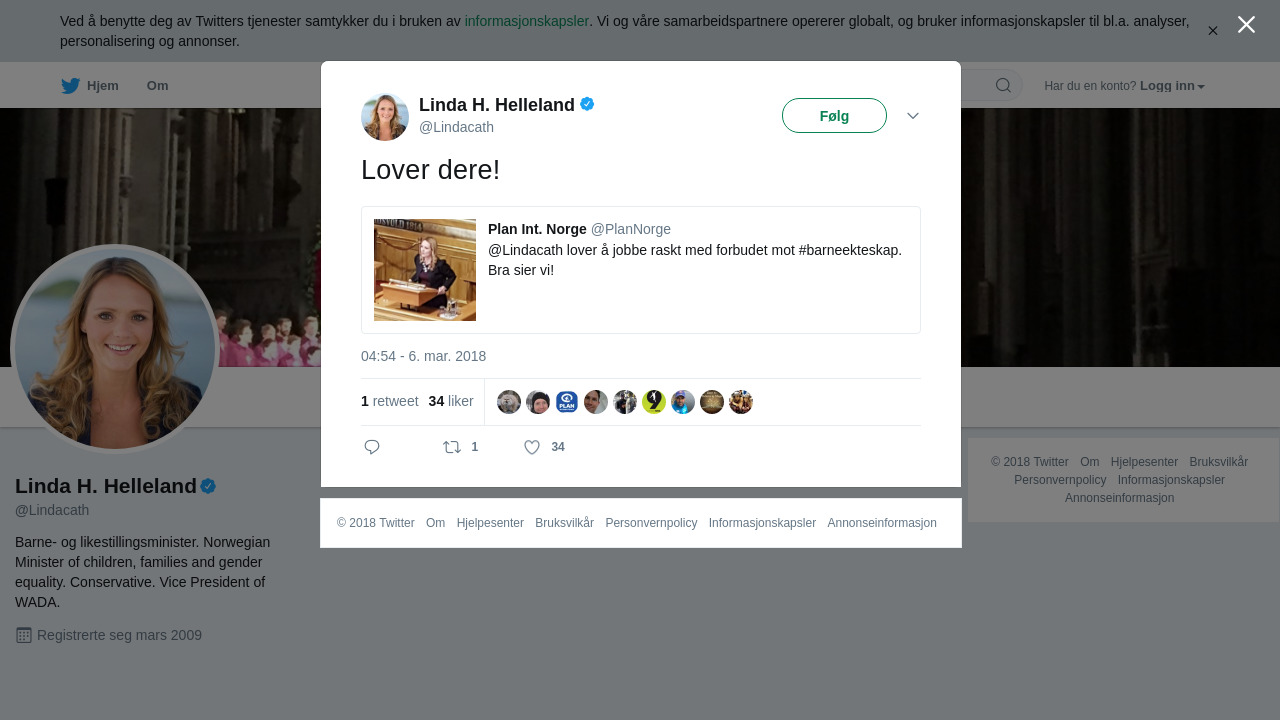 “@Lindacath lover å jobbe raskt med forbudet mot #barneekteskap. Bra sier vi!”