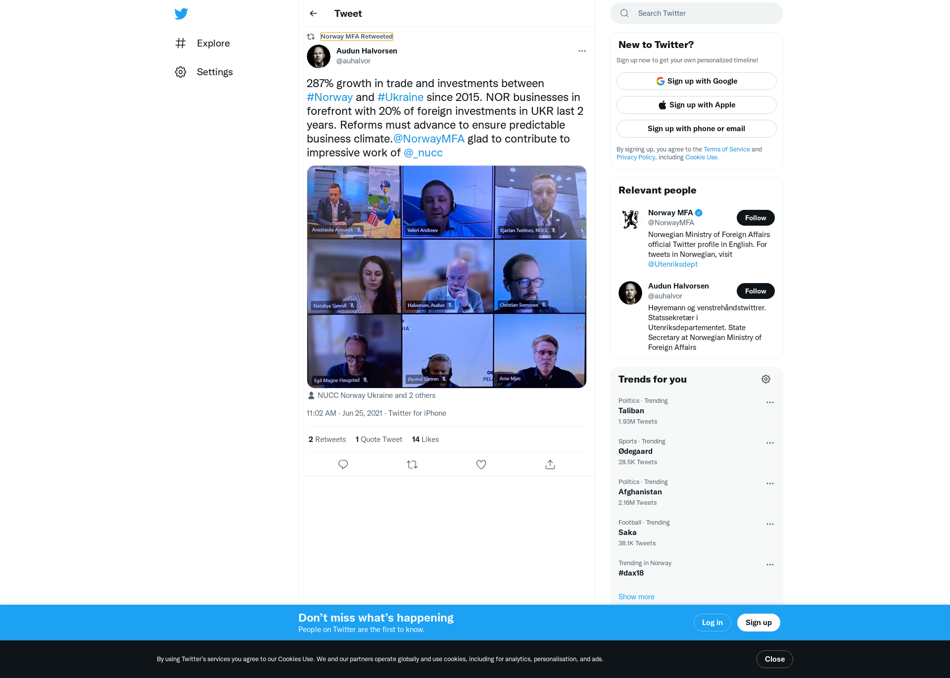 RT @auhalvor: 287% growth in trade and investments between #Norway and #Ukraine since 2015. NOR businesses in forefront with 20% of foreign investments in UKR last 2 years. Reforms must advance to ensure predictable business climate.@NorwayMFA glad to contribute to impressive work of @_nucc https://t.co/iedo2nSIu0