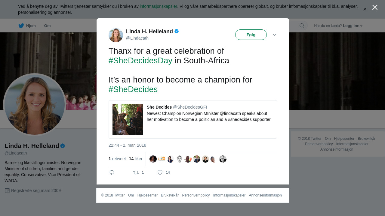 “Newest Champion Norwegian MInister @lindacath speaks about her motivation to become a politician and a #shedecides supporter”