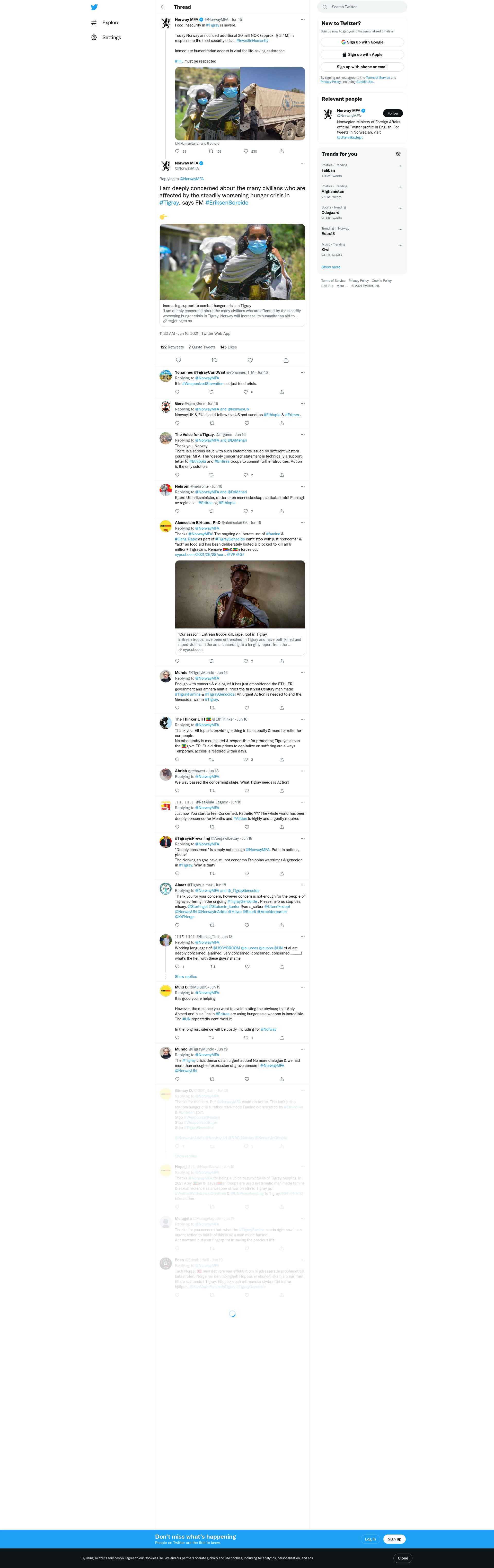 I am deeply concerned about the many civilians who are affected by the steadily worsening hunger crisis in #Tigray, says FM #EriksenSoreide 👉https://t.co/PBa5DrVkLq