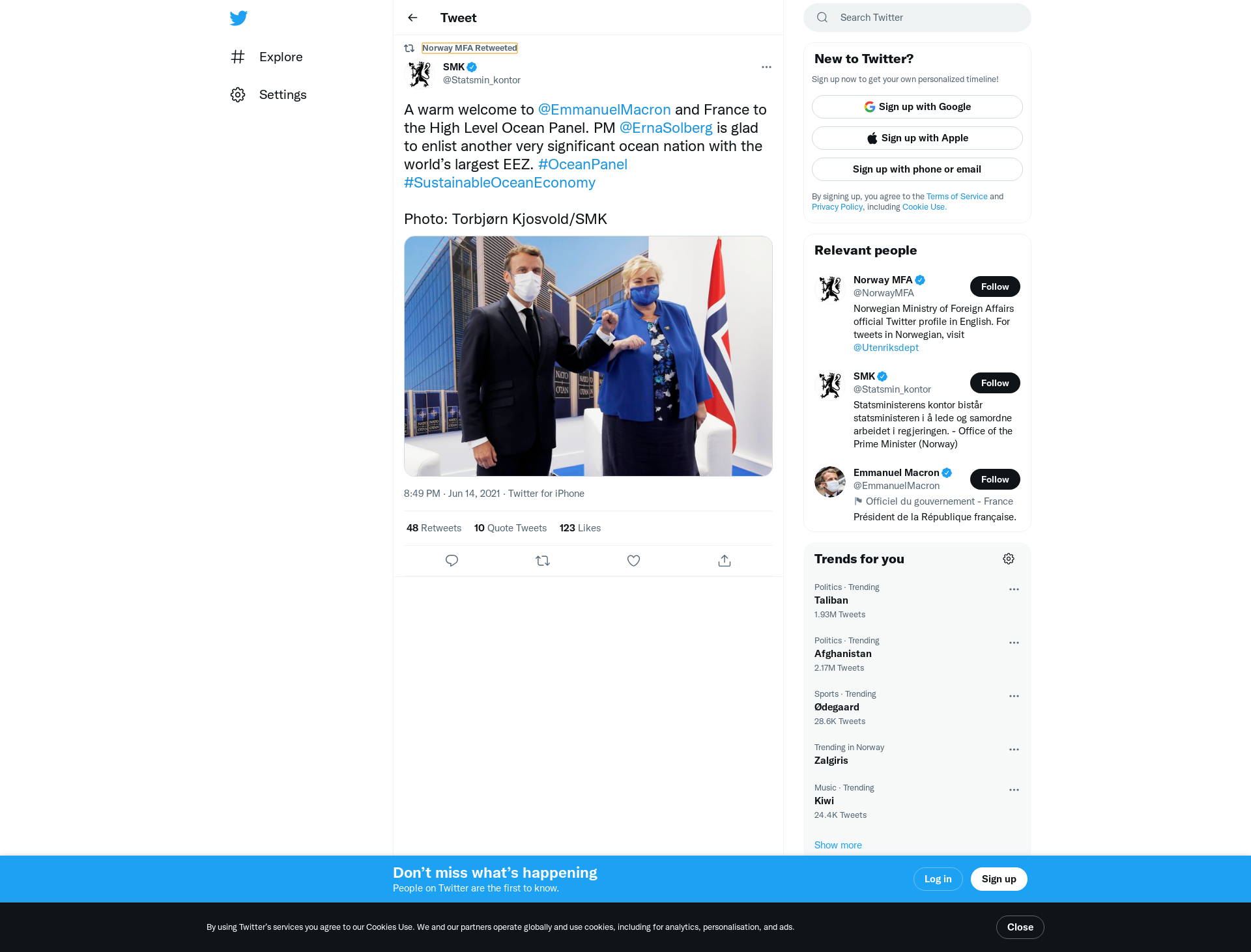 RT @Statsmin_kontor: A warm welcome to @EmmanuelMacron and France to the High Level Ocean Panel. PM @ErnaSolberg is glad to enlist another very significant ocean nation with the world’s largest EEZ. #OceanPanel #SustainableOceanEconomy