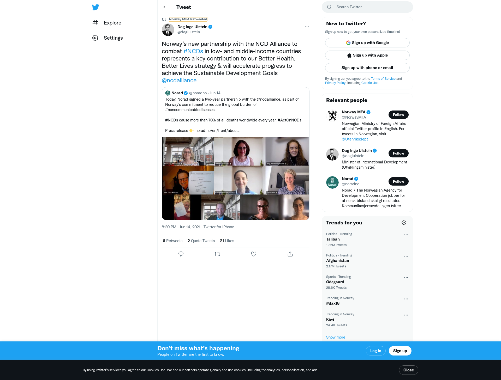 RT @dagiulstein: Norway’s new partnership with the NCD Alliance to combat #NCDs in low- and middle-income countries represents a key contribution to our Better Health, Better Lives strategy & will accelerate progress to achieve the Sustainable Development Goals