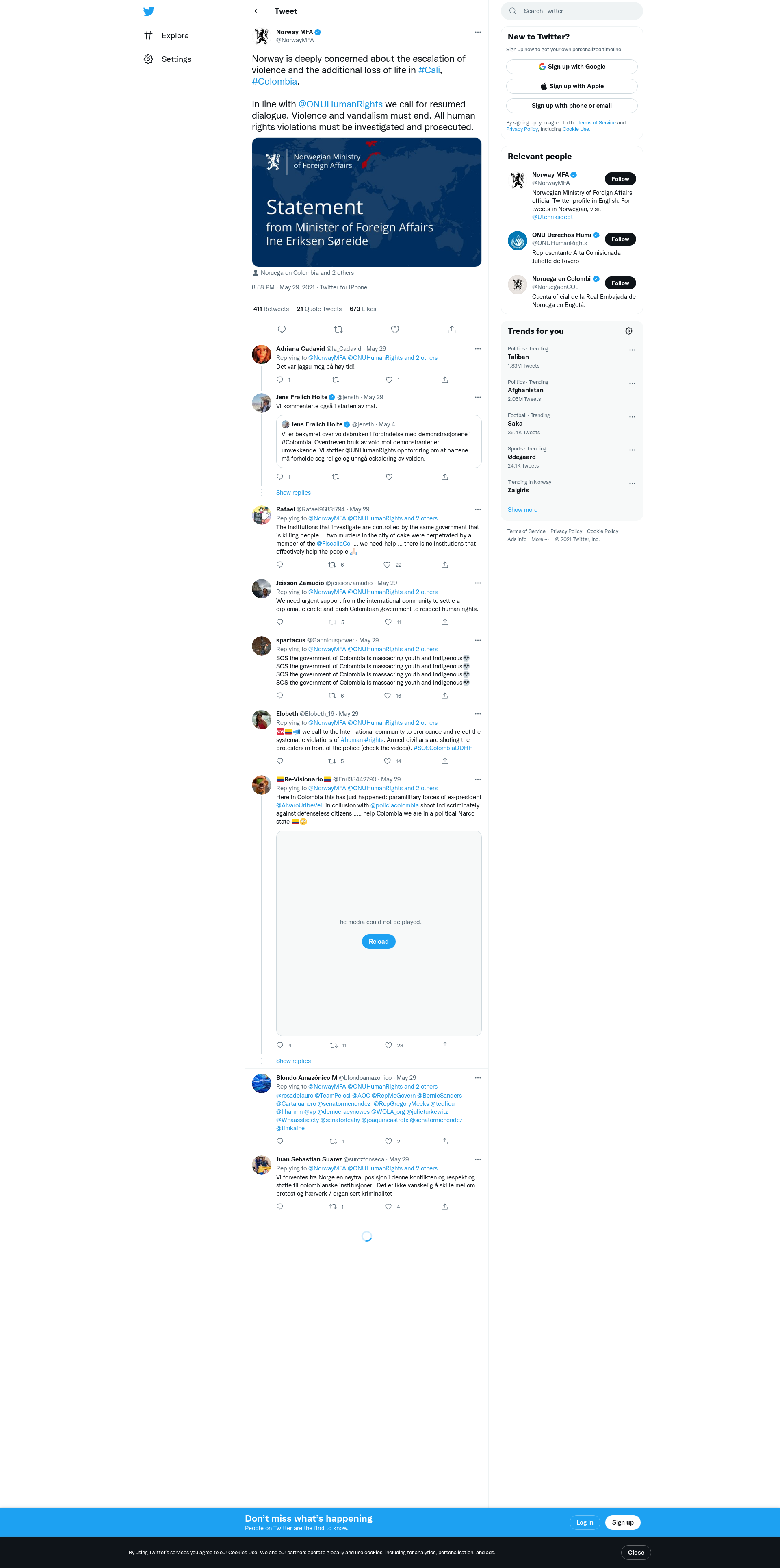 Norway is deeply concerned about the escalation of violence and the additional loss of life in #Cali, #Colombia.