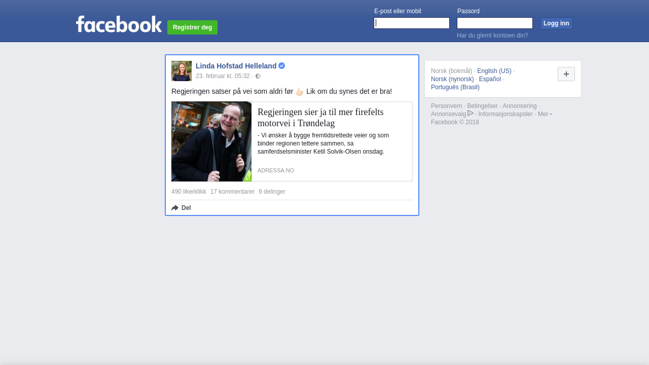 Regjeringen satser på vei som aldri før 👍🏻 Lik om du synes det er bra!