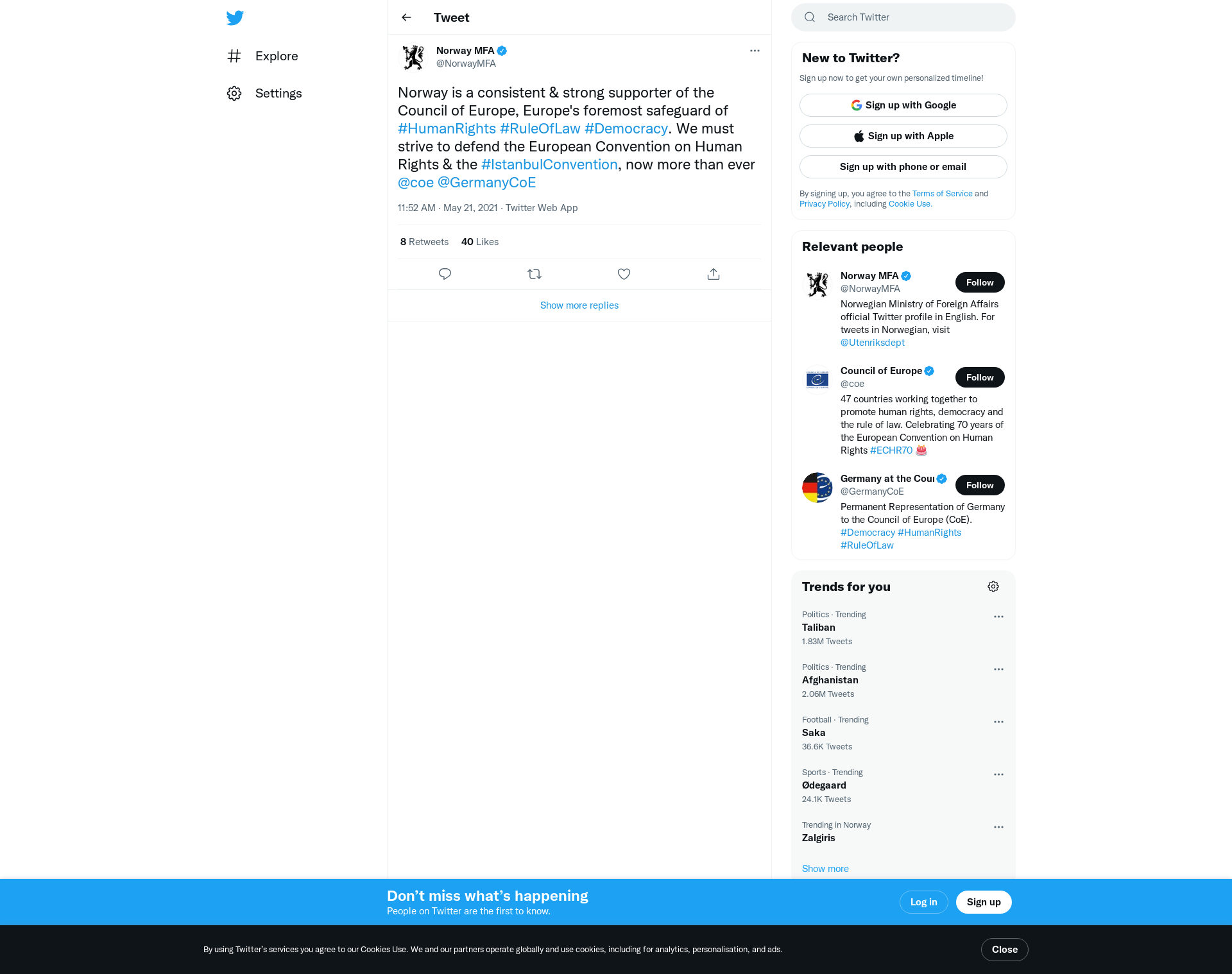 Norway is a consistent & strong supporter of the Council of Europe, Europe's foremost safeguard of #HumanRights #RuleOfLaw #Democracy. We must strive to defend the European Convention on Human Rights & the #IstanbulConvention, now more than ever @coe @GermanyCoE
