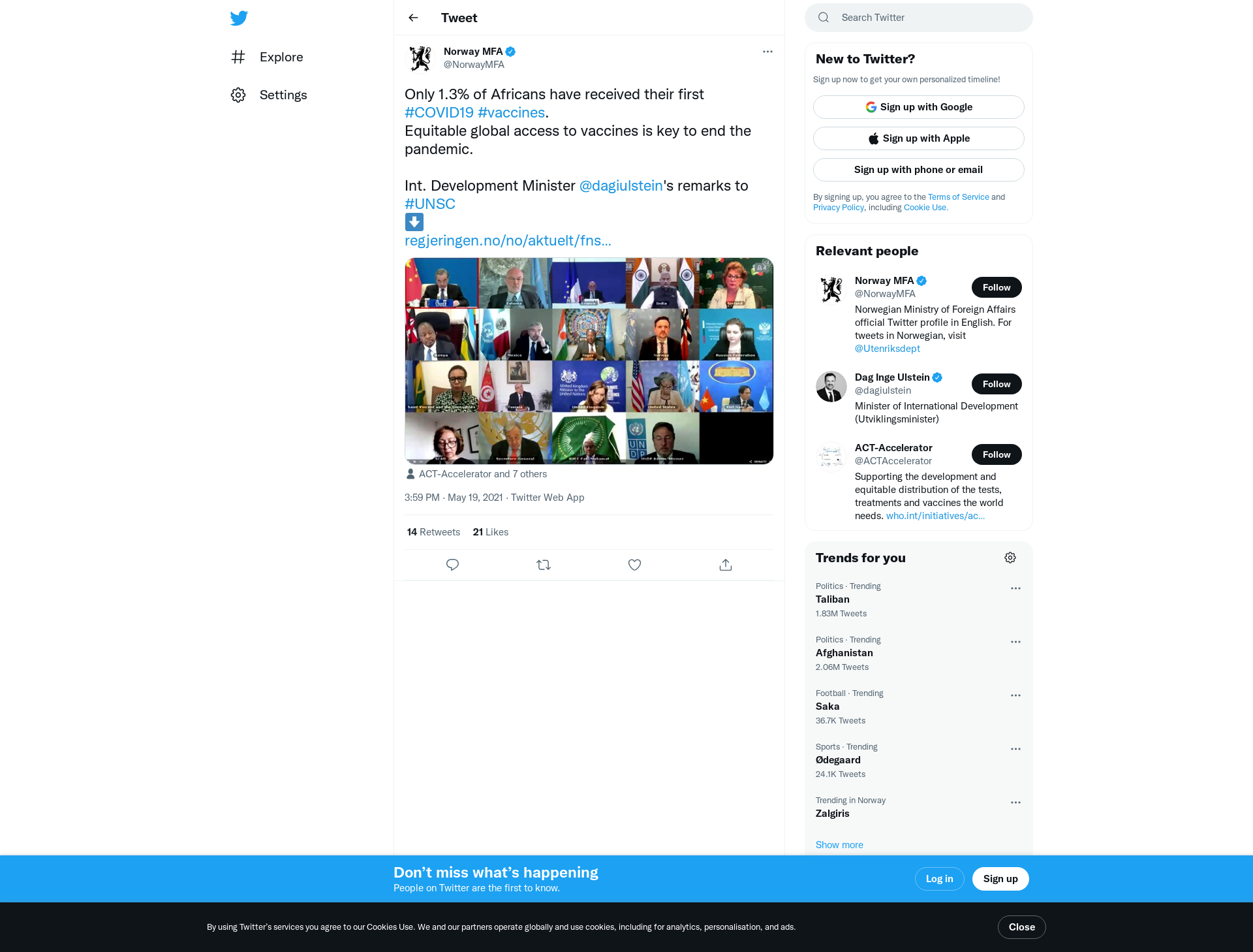 Utviklingsminister Dag-Inge Ulsteins innlegg under debatten (digital) i FNs sikkerhetsråd om "Addressing root causes of conflict while promoting post-pandemic recovery in Africa".