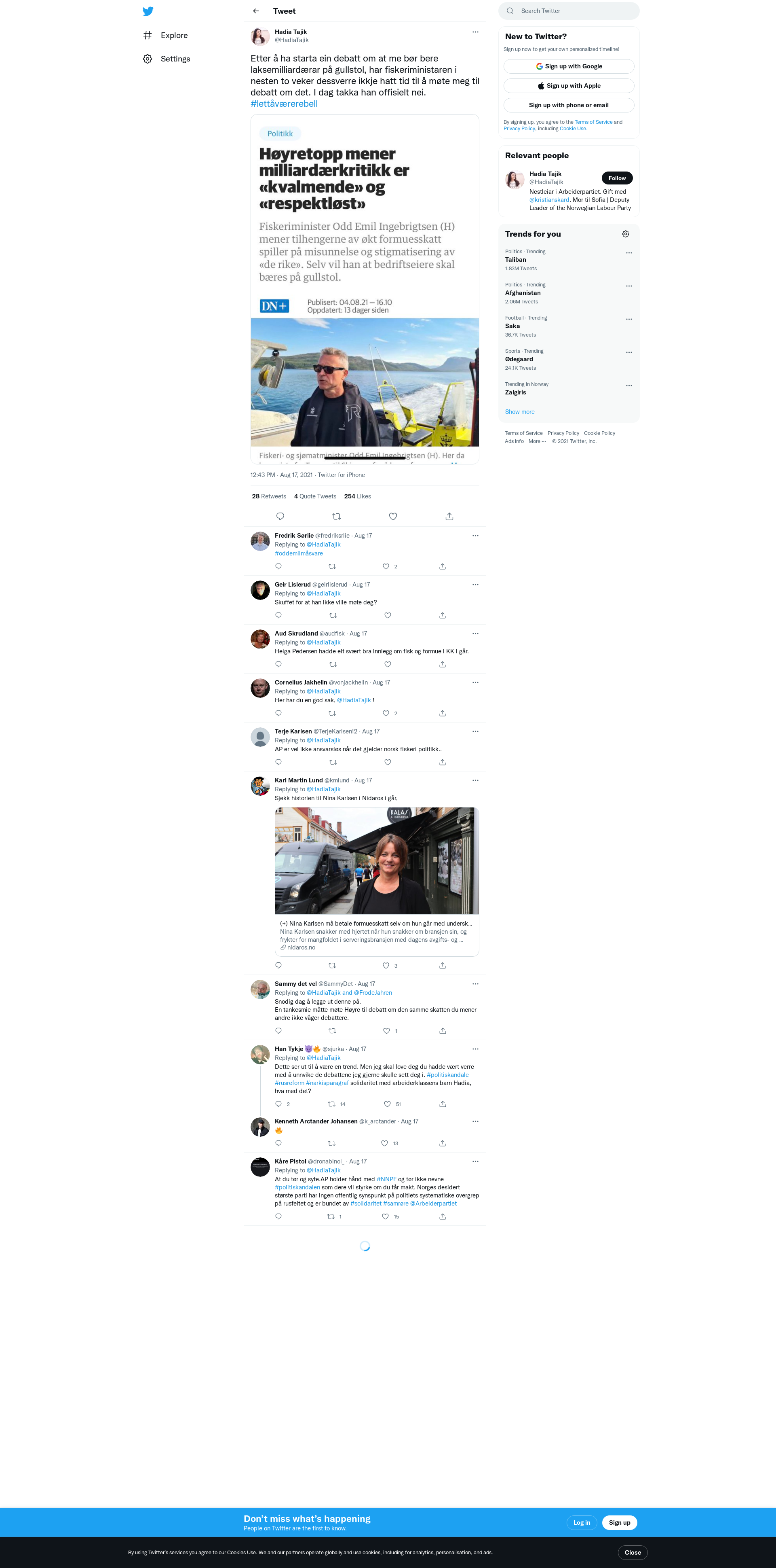 Etter å ha starta ein debatt om at me bør bere laksemilliardærar på gullstol, har fiskeriministaren i nesten to veker dessverre ikkje hatt tid til å møte meg til debatt om det. I dag takka han offisielt nei. #lettåværerebell https://t.co/yhL7CqwUJC