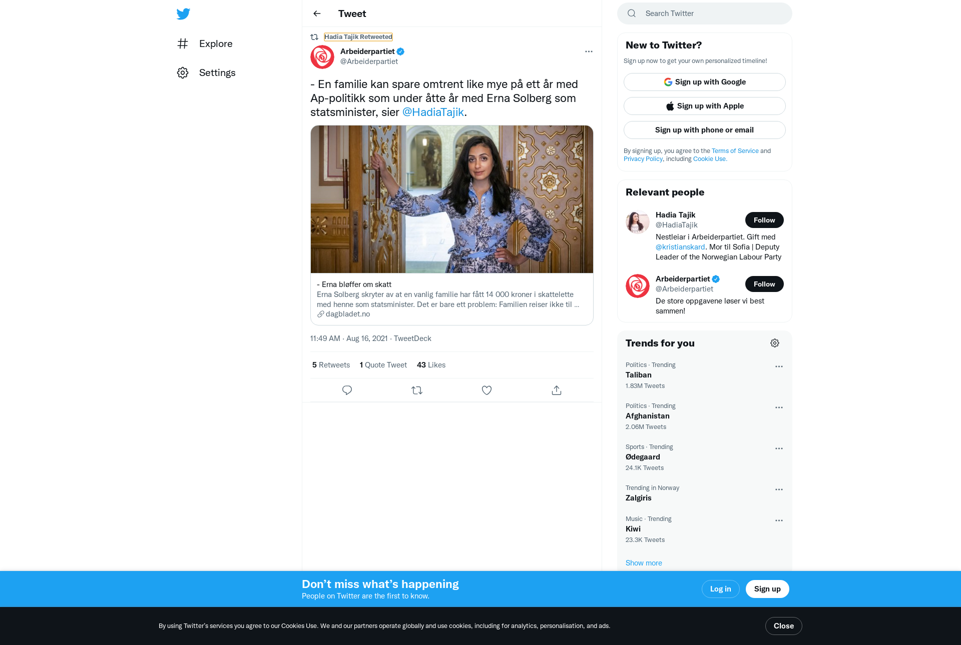 RT @Arbeiderpartiet: - En familie kan spare omtrent like mye på ett år med Ap-politikk som under åtte år med Erna Solberg som statsminister, sier @HadiaTajik. https://t.co/bLdgwbwJqy