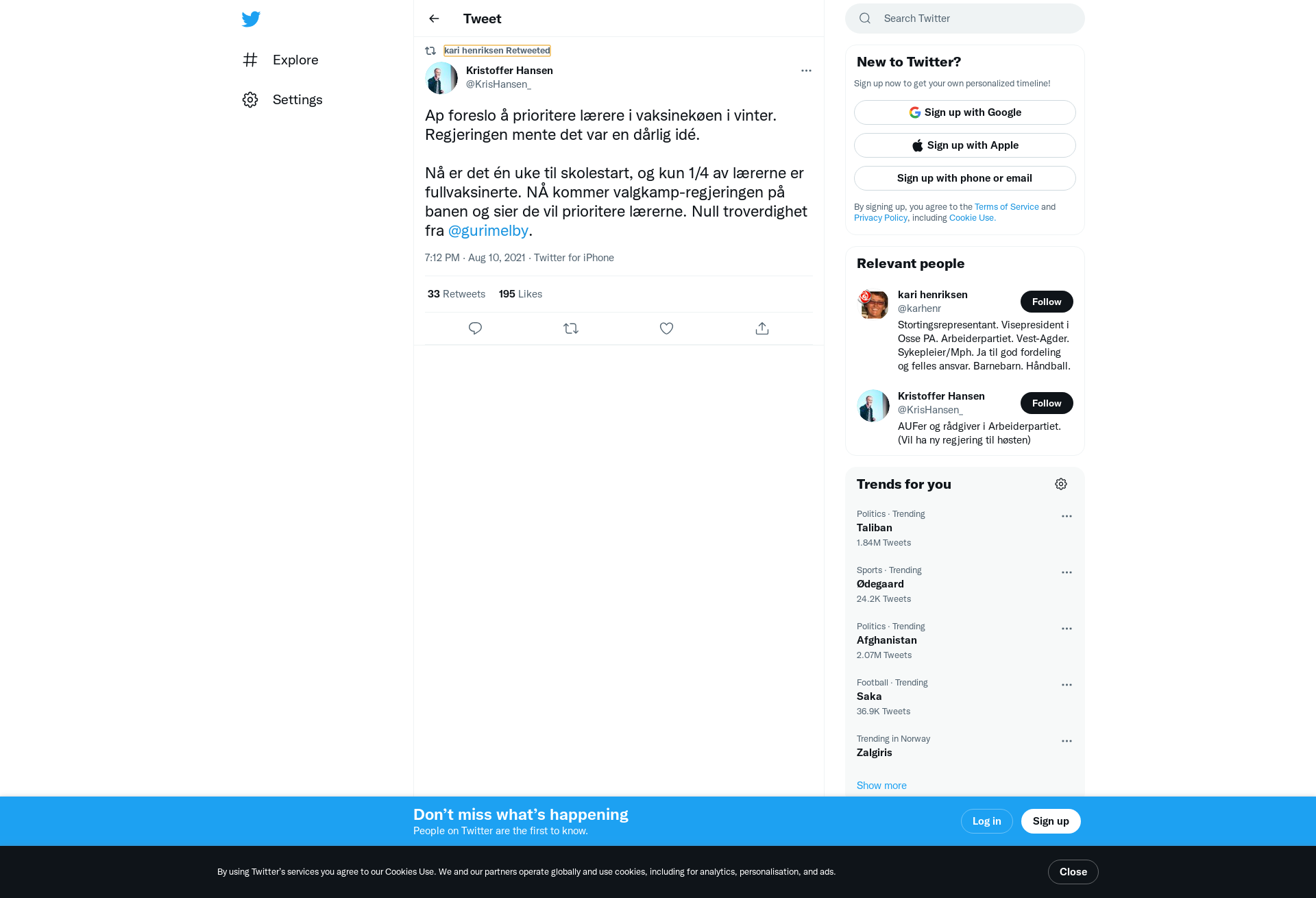 RT @KrisHansen_: Ap foreslo å prioritere lærere i vaksinekøen i vinter. Regjeringen mente det var en dårlig idé. Nå er det én uke til sko…