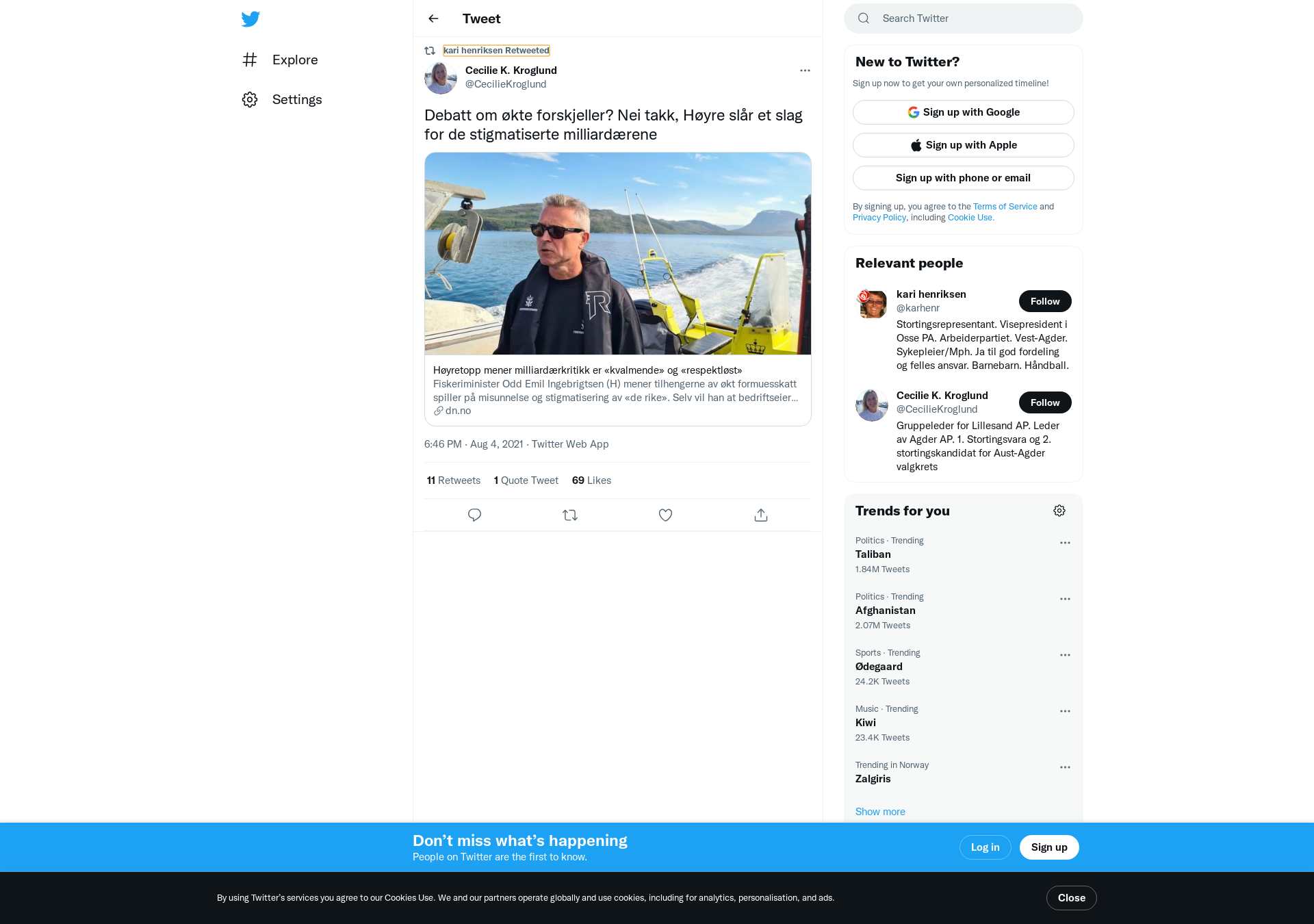 Høyretopp mener milliardærkritikk er «kvalmende» og «respektløst»
