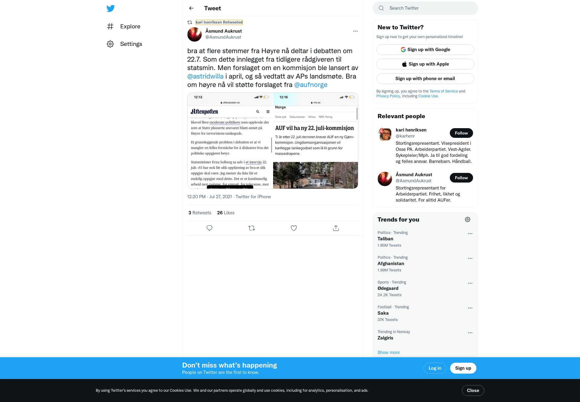 RT @AsmundAukrust: bra at flere stemmer fra Høyre nå deltar i debatten om 22.7. Som dette innlegget fra tidligere rådgiveren til statsmin. Men forslaget om en kommisjon ble lansert av @astridwilla i april, og så vedtatt av APs landsmøte. Bra om høyre nå vil støtte forslaget fra @aufnorge https://t.co/m2Z8kghNd0