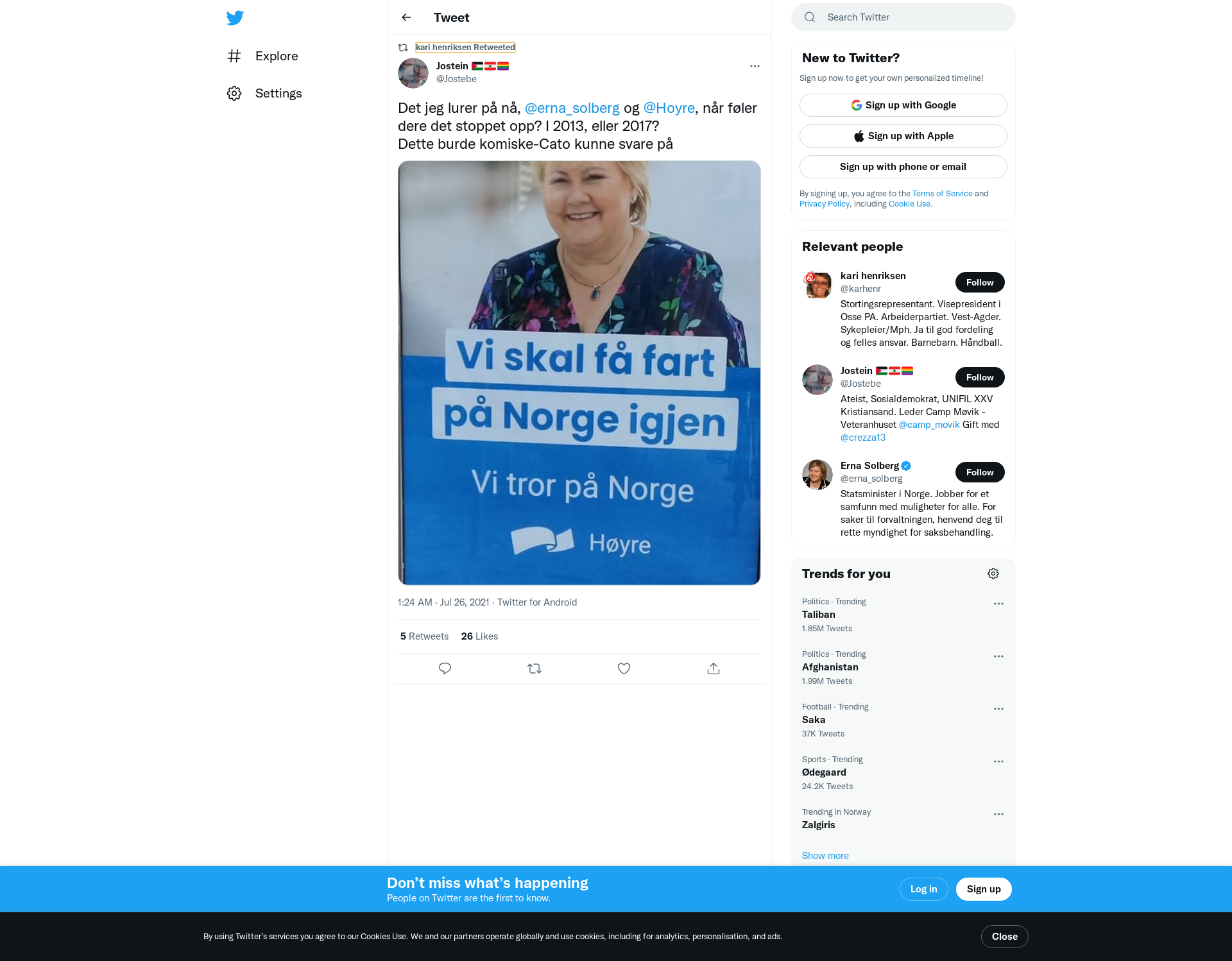 RT @Jostebe: Det jeg lurer på nå, @erna_solberg og @Hoyre, når føler dere det stoppet opp? I 2013, eller 2017? Dette burde komiske-Cato kun…