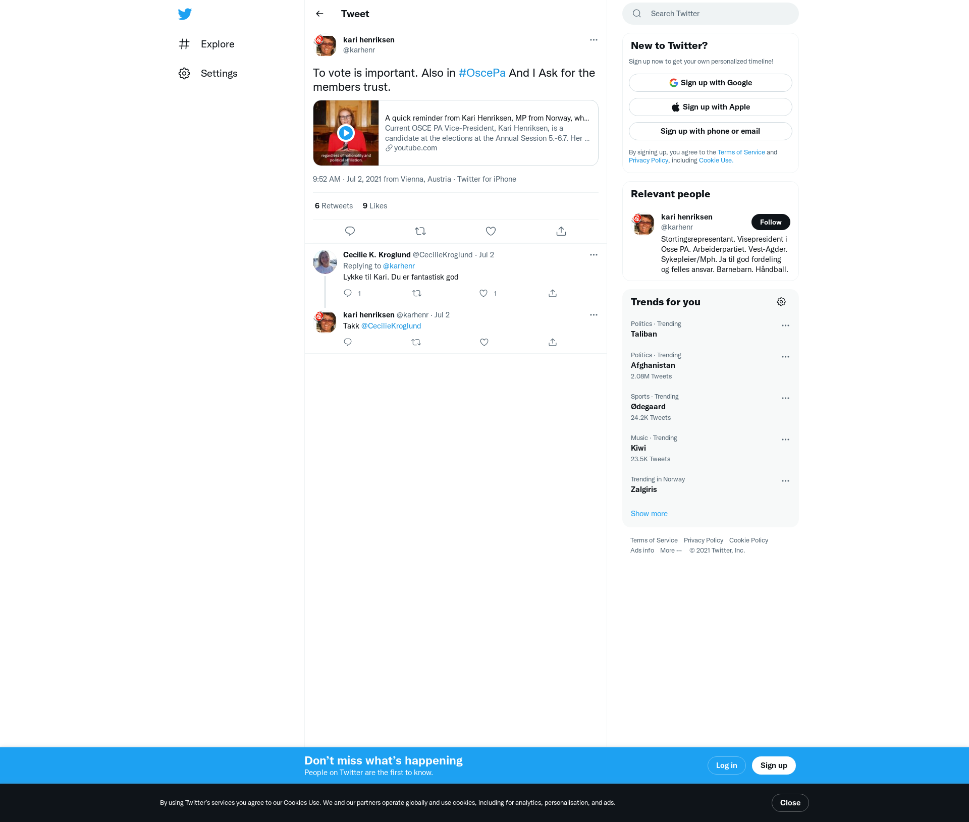 A quick reminder from Kari Henriksen, MP from Norway, who is running for president in the #OSCEPA