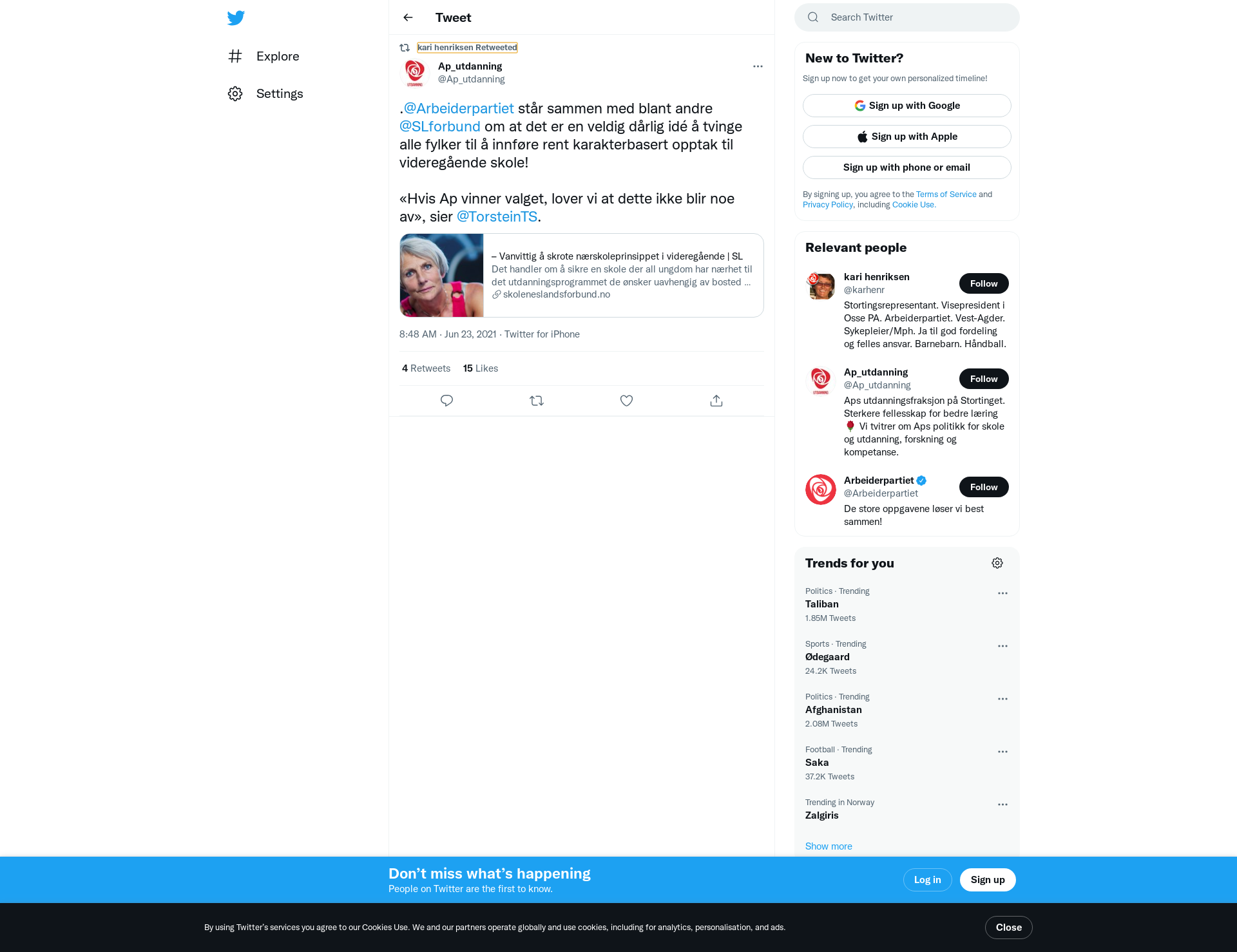 RT @Ap_utdanning: .@Arbeiderpartiet står sammen med blant andre @SLforbund om at det er en veldig dårlig idé å tvinge alle fylker til å innføre rent karakterbasert opptak til videregående skole!
