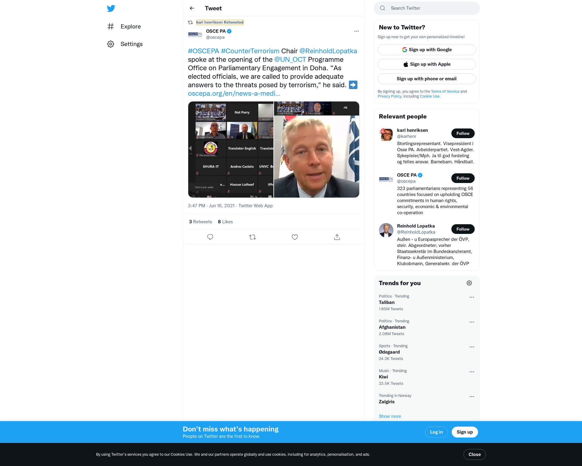 RT @oscepa: #OSCEPA #CounterTerrorism Chair @ReinholdLopatka spoke at the opening of the @UN_OCT Programme Office on Parliamentary Engagement in Doha. “As elected officials, we are called to provide adequate answers to the threats posed by terrorism," he said. ➡️ https://t.co/WsLajg0y2G https://t.co/3YwUUelf1e