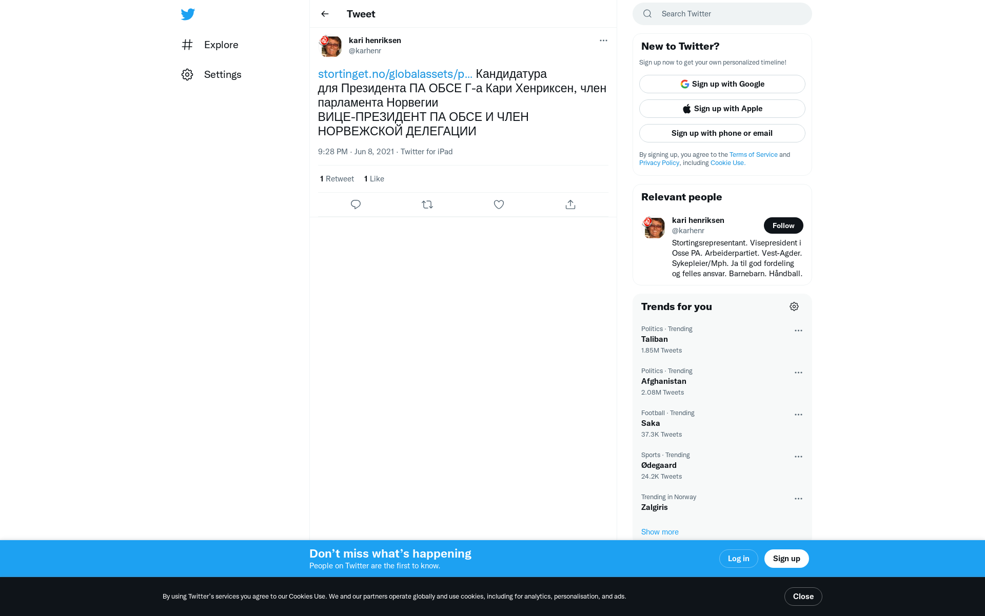 https://t.co/zAWDOFgAB4 Кандидатура для Президента ПА ОБСЕ Г-а Кари Хенриксен, член парламента Норвегии ВИЦЕ-ПРЕЗИДЕНТ ПА ОБСЕ И ЧЛЕН НОРВЕЖСКОЙ ДЕЛЕГАЦИИ
