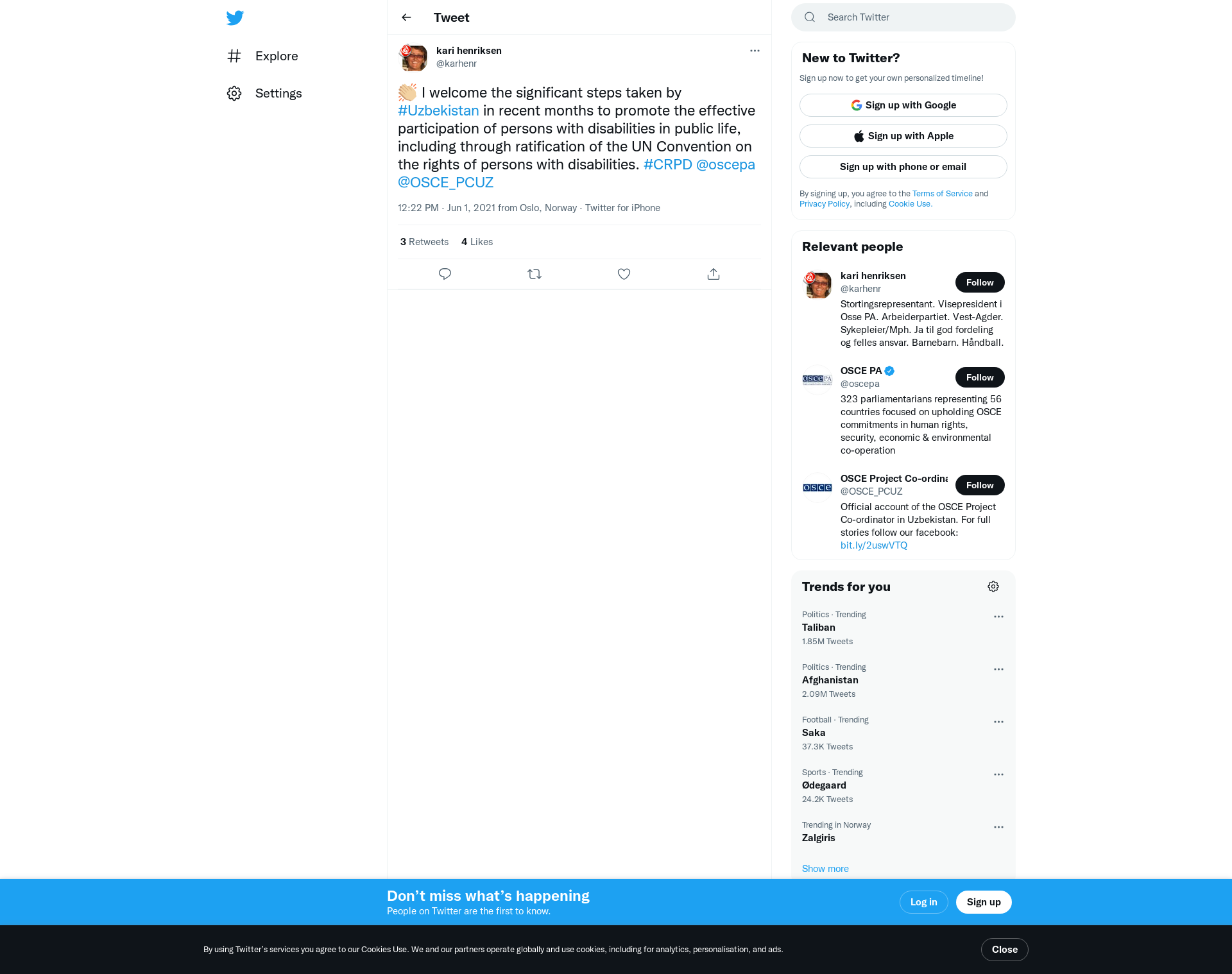 👏🏼 I welcome the significant steps taken by #Uzbekistan in recent months to promote the effective participation of persons with disabilities in public life, including through ratification of the UN Convention on the rights of persons with disabilities. #CRPD @oscepa @OSCE_PCUZ