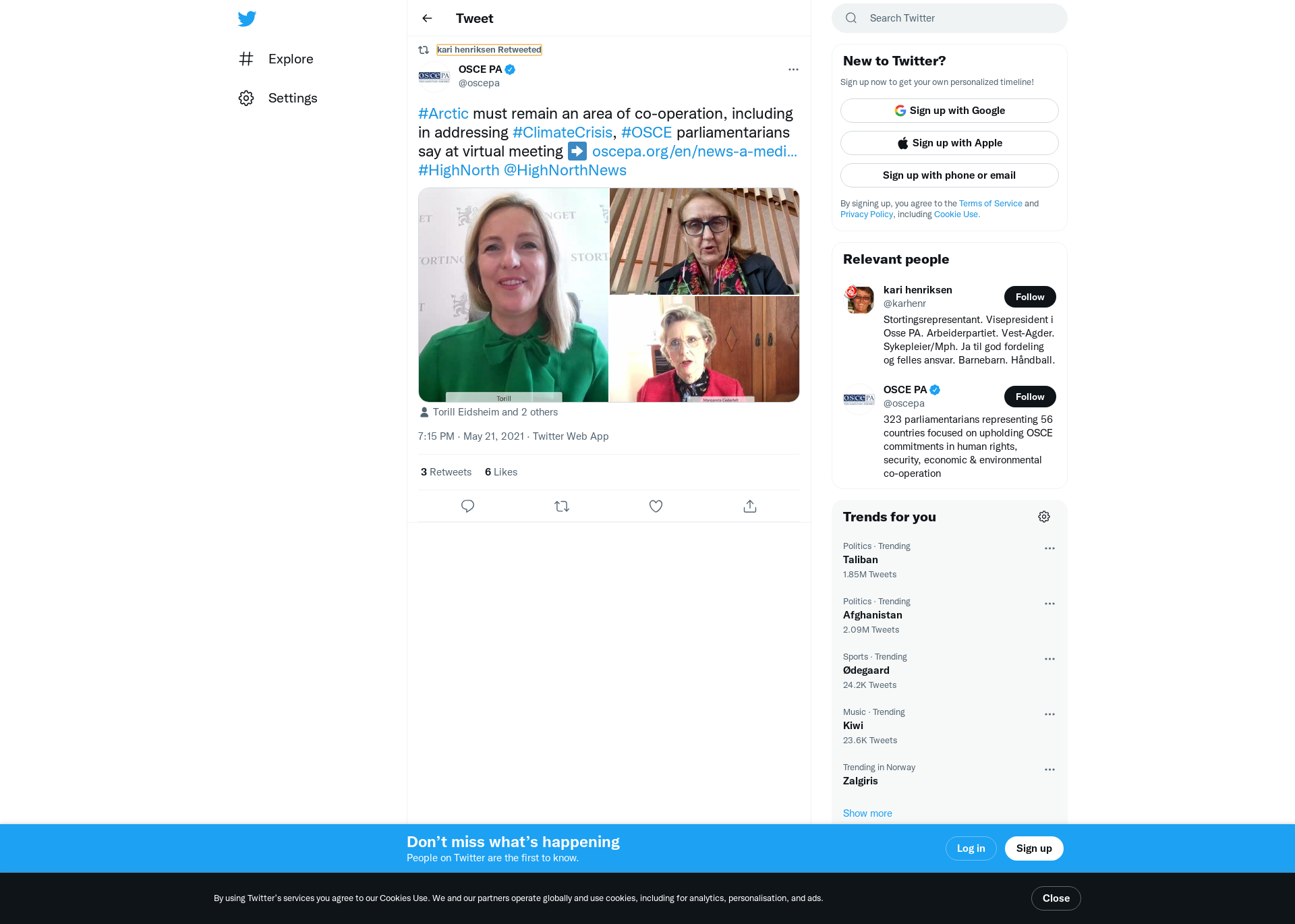 RT @oscepa: #Arctic must remain an area of co-operation, including in addressing #ClimateCrisis, #OSCE parliamentarians say at virtual meeting ➡️ https://t.co/w9YMpk1Lz7 #HighNorth @HighNorthNews https://t.co/49DxviTELQ