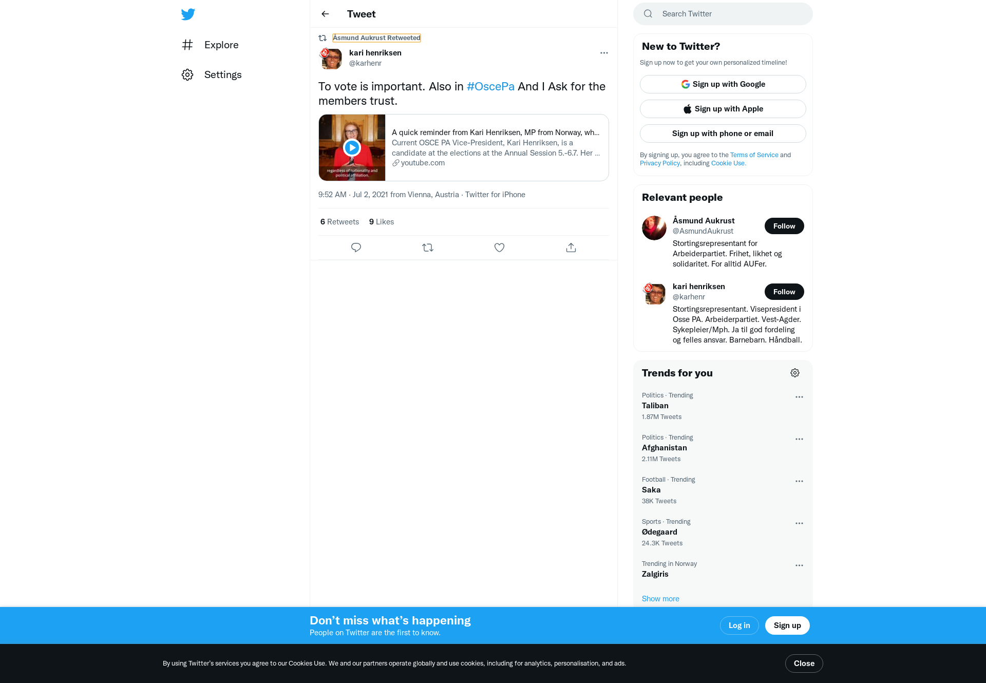 A quick reminder from Kari Henriksen, MP from Norway, who is running for president in the #OSCEPA