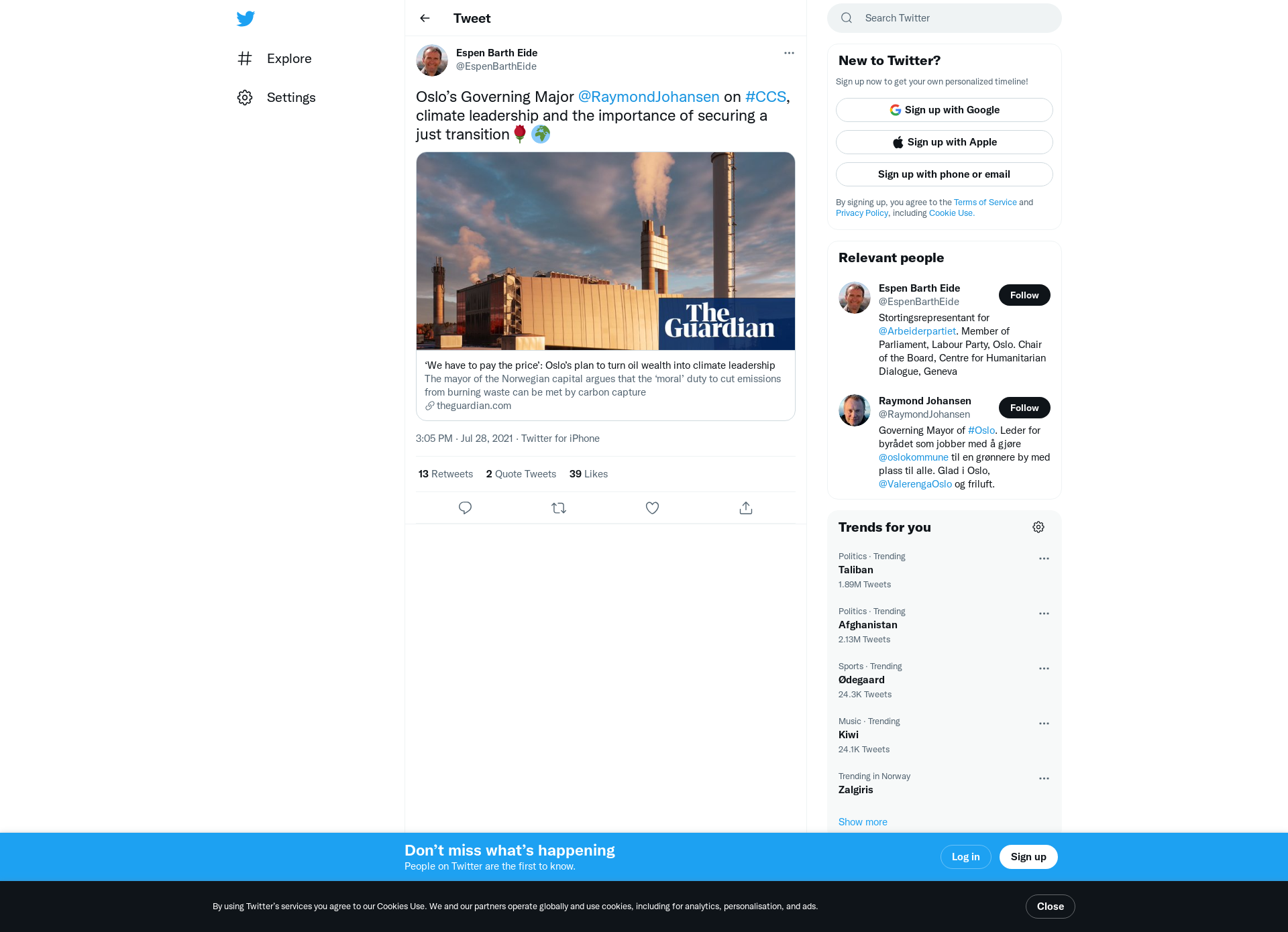 Oslo’s Governing Major @RaymondJohansen on #CCS, climate leadership and the importance of securing a just transition🌹🌍 https://t.co/EuvHIgZTJp
