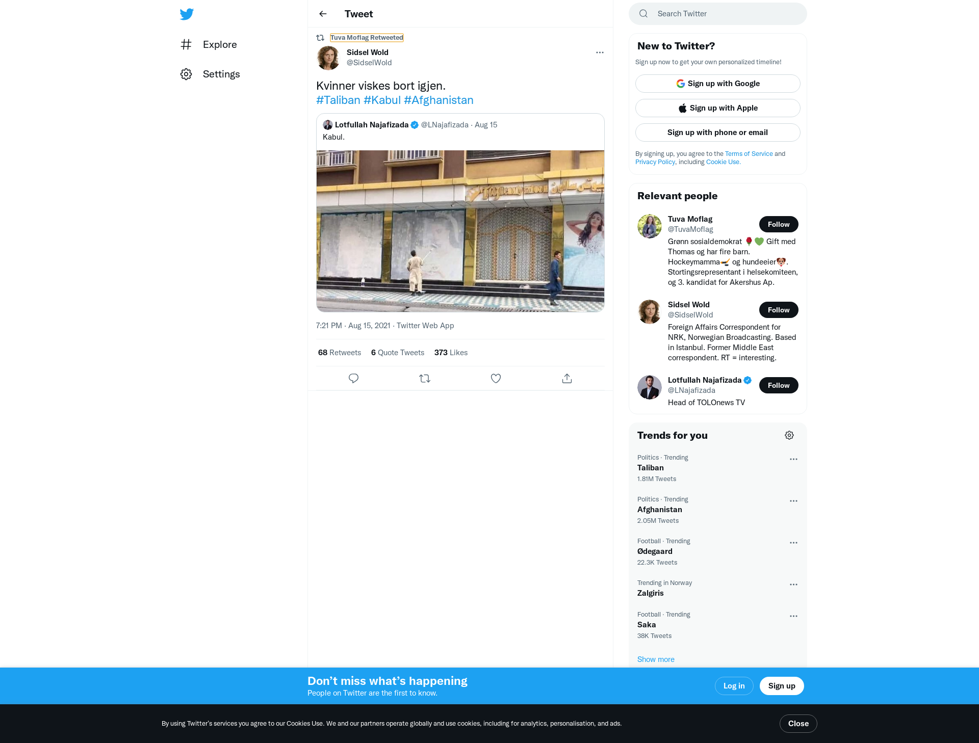 RT @SidselWold: Kvinner viskes bort igjen. #Taliban #Kabul #Afghanistan
