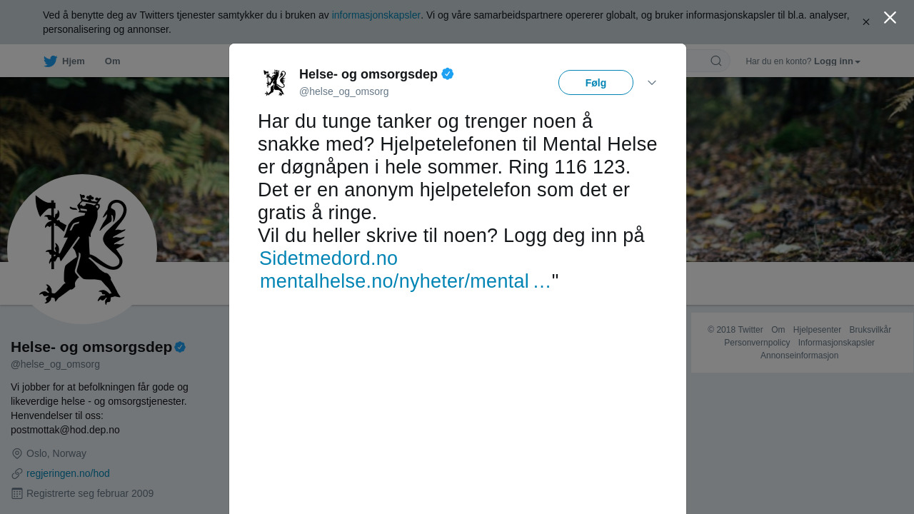 Har du tunge tanker og trenger noen å snakke med? Hjelpetelefonen til Mental Helse er døgnåpen i hele sommer. Ring 116 123. Det er en anonym hjelpetelefon som det er gratis å ringe.