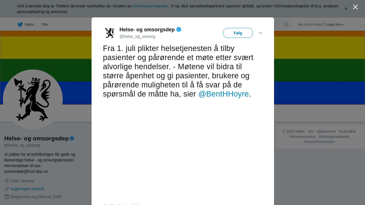 Fra 1. juli plikter helsetjenesten å tilby pasienter og pårørende et møte etter svært alvorlige hendelser. - Møtene vil bidra til større åpenhet og gi pasienter, brukere og pårørende muligheten til å få svar på de spørsmål de måtte ha, sier @BentHHoyre. https://t.co/aA03cbdmdL