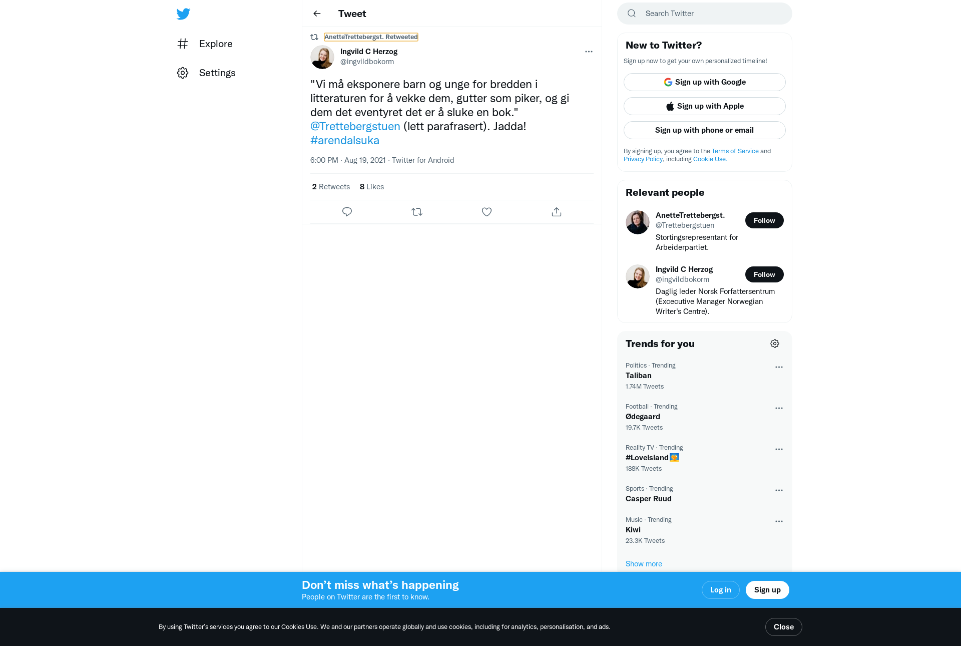 RT @ingvildbokorm: "Vi må eksponere barn og unge for bredden i litteraturen for å vekke dem, gutter som piker, og gi dem det eventyret det er å sluke en bok." @Trettebergstuen (lett parafrasert). Jadda! #arendalsuka