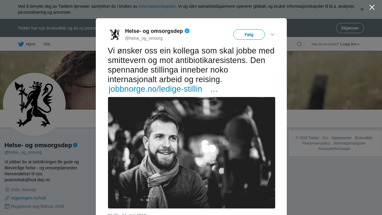 Stillingstittel: Rådgjevar/sniorrådgjevar smittevern og antibiotikaresistens - fast stilling (153404), Arbeidsgiver: Helse- og omsorgsdepartementet, Søknadsfrist: 7. juni 2018