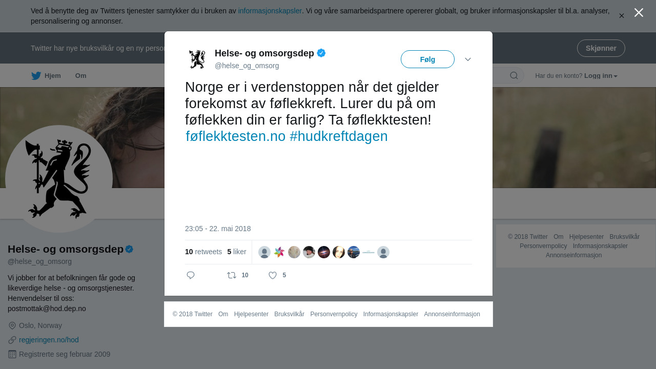 Hvert år får rundt 2000 nordmenn føflekkreft (melanom). Hvis kreften oppdages tidlig, kan det redde livet ditt. Lær deg hva du skal se etter – bruk 2 minutter på denne testen: https://kreftforeningen.no/hudsjekk