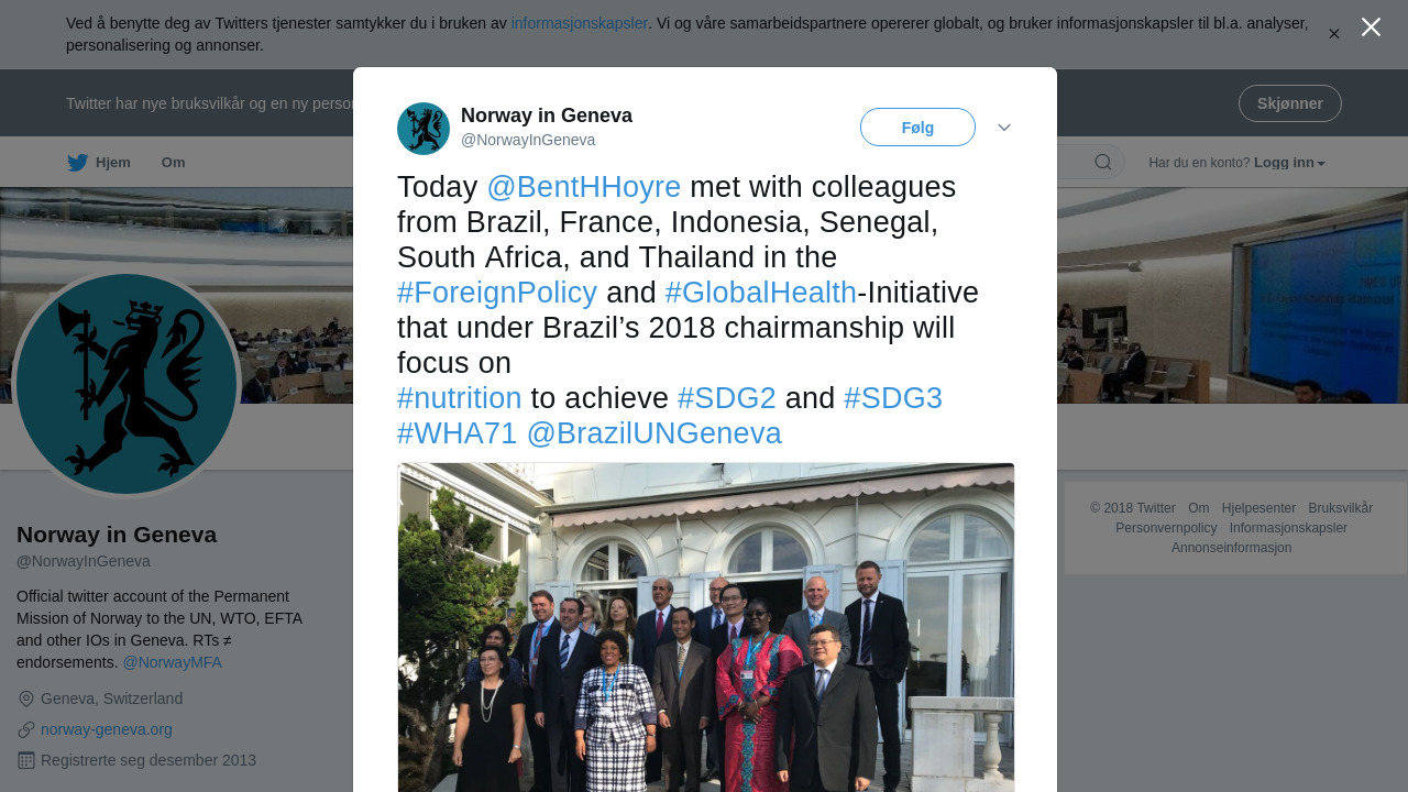 RT @NorwayInGeneva: Today @BentHHoyre met with colleagues from Brazil, France, Indonesia, Senegal, South Africa, and Thailand in the… https://t.co/NFQyuFduDo