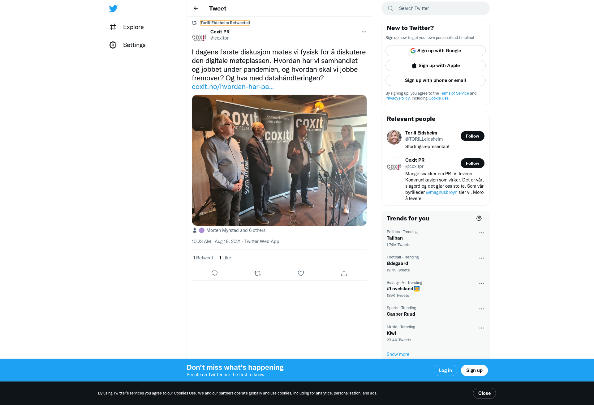 RT @coxitpr: I dagens første diskusjon møtes vi fysisk for å diskutere den digitale møteplassen. Hvordan har vi samhandlet og jobbet under pandemien, og hvordan skal vi jobbe fremover? Og hva med datahåndteringen? https://t.co/SfbMLUZ0fD https://t.co/4vMPIk73m5