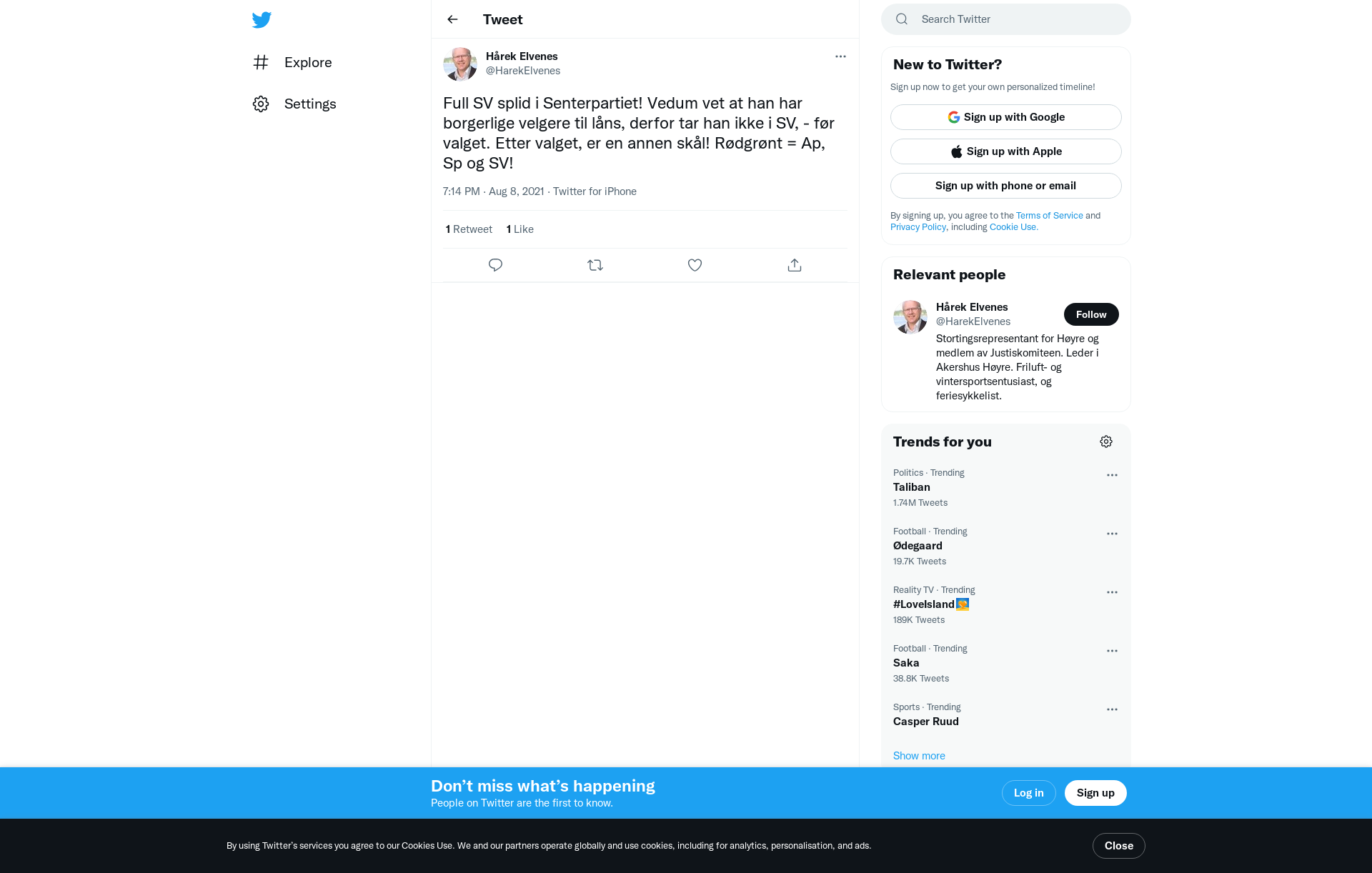 Full SV splid i Senterpartiet! Vedum vet at han har borgerlige velgere til låns, derfor tar han ikke i SV, - før valget. Etter valget, er en annen skål! Rødgrønt = Ap, Sp og SV!