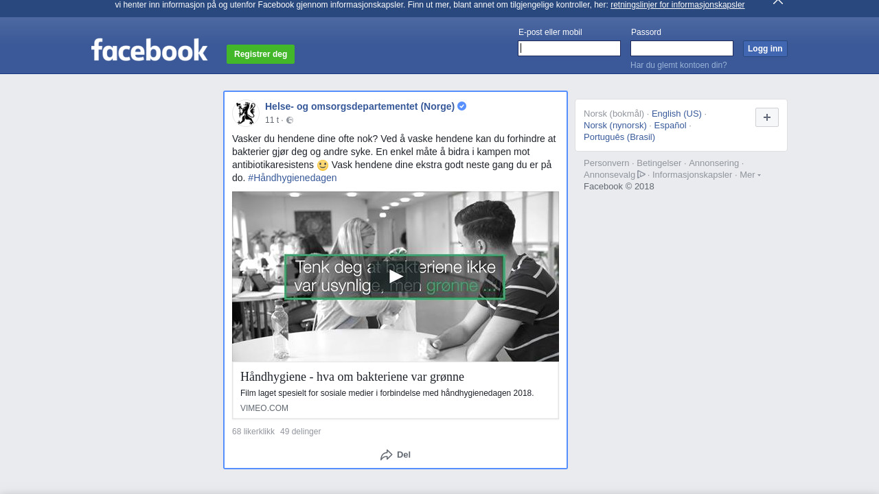 Film laget spesielt for sosiale medier i forbindelse med håndhygienedagen 2018.