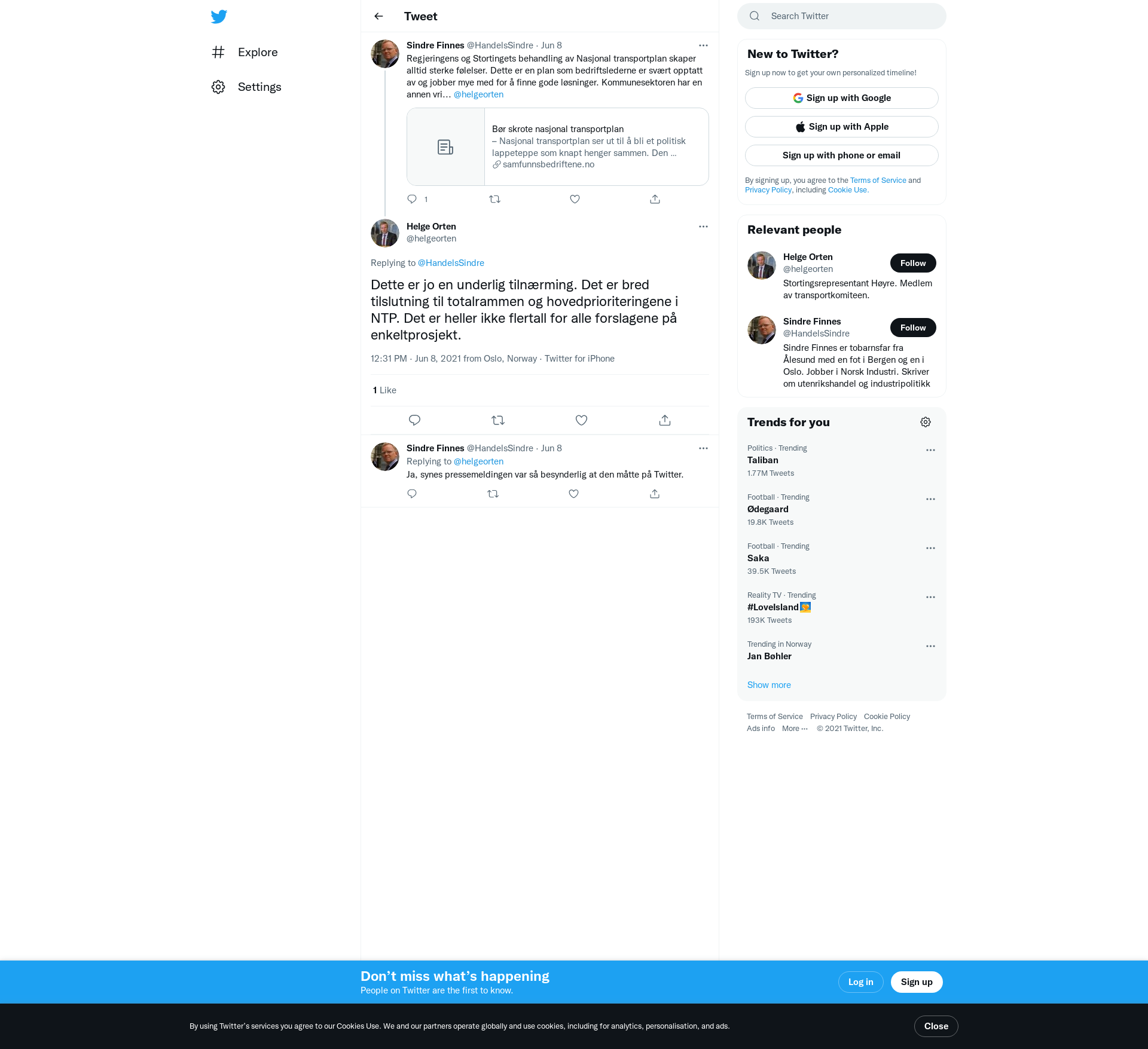 @HandelsSindre Dette er jo en underlig tilnærming. Det er bred tilslutning til totalrammen og hovedprioriteringene i NTP. Det er heller ikke flertall for alle forslagene på enkeltprosjekt.