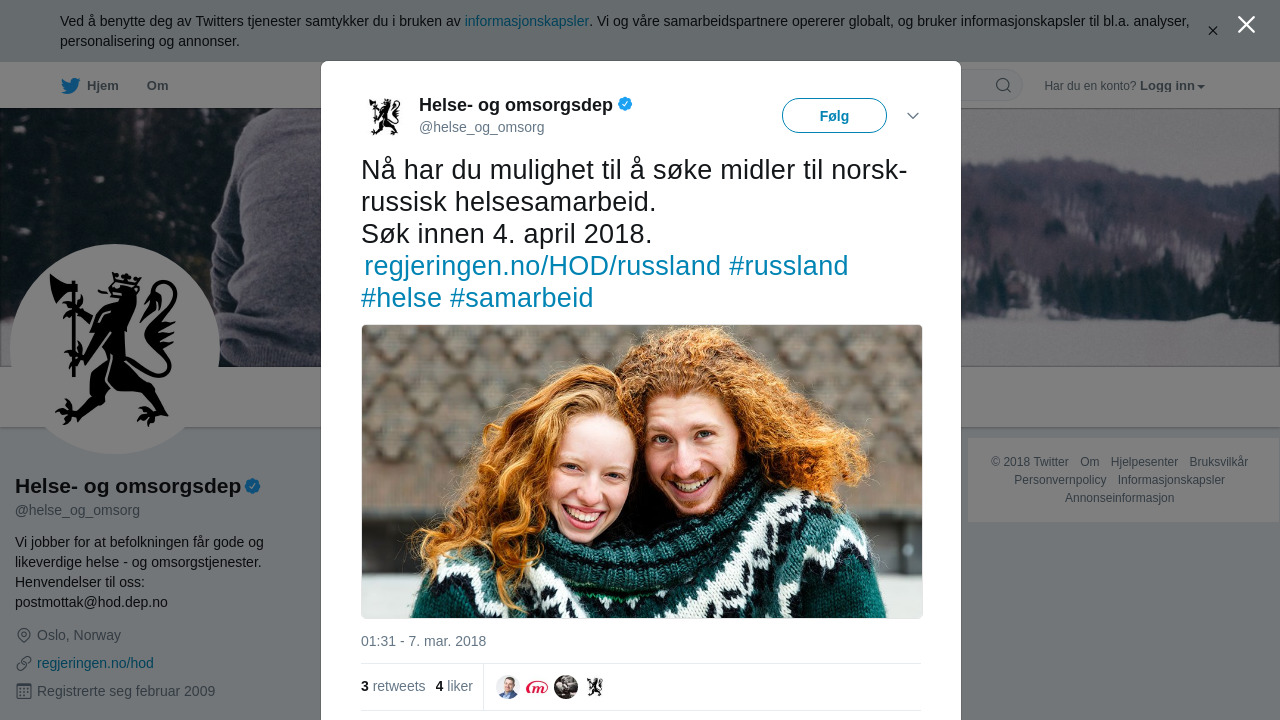 Helse- og omsorgsdepartementet lyser nå ut midler til norsk-russiske helsesamarbeidsprosjekter med søknadsfrist 4. april 2018. Tilskuddene vil kunne benyttes til prosjektarbeid i 2018 og 2019, med rapporteringsfrist 1. juni 2019.