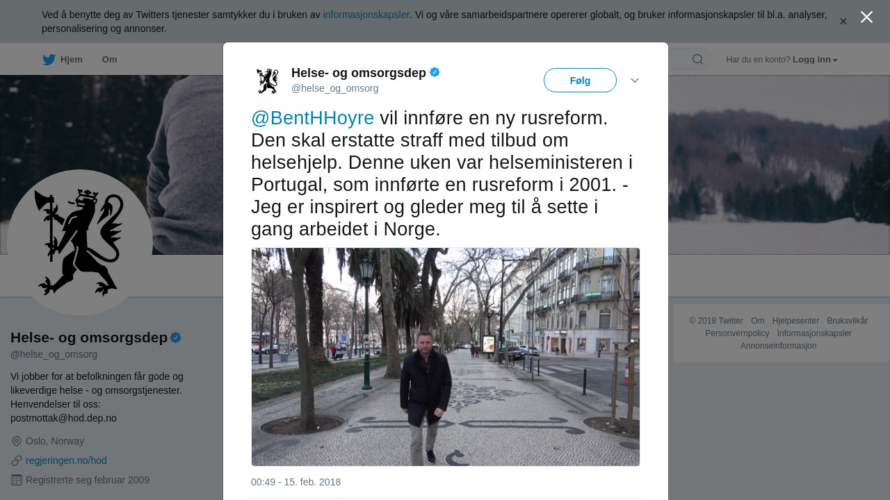 @BentHHoyre vil innføre en ny rusreform. Den skal erstatte straff med tilbud om helsehjelp. Denne uken var helsemin… https://t.co/N9NEX6TiWp